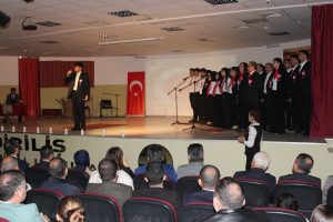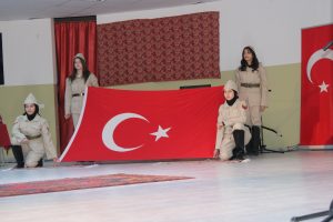 Programda öğrencilerden oluşan koro tarafından Mehmet Akif Ersoy’un şiirlerinden derlenen “Bir Yıldız Bir Hilal İlelebet İstikbal” temalı şiir dinletisi sahnelendi.