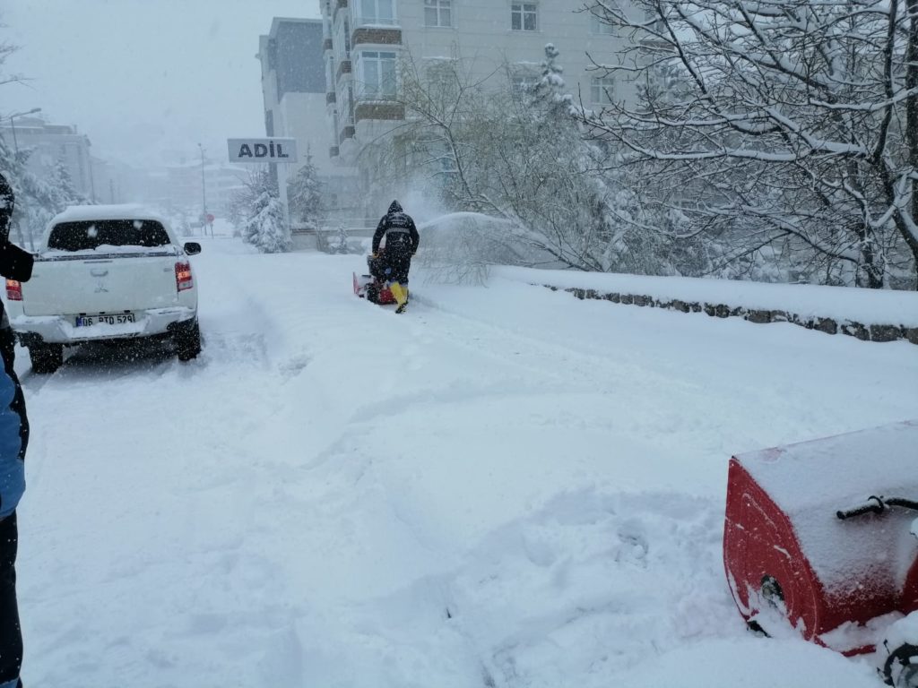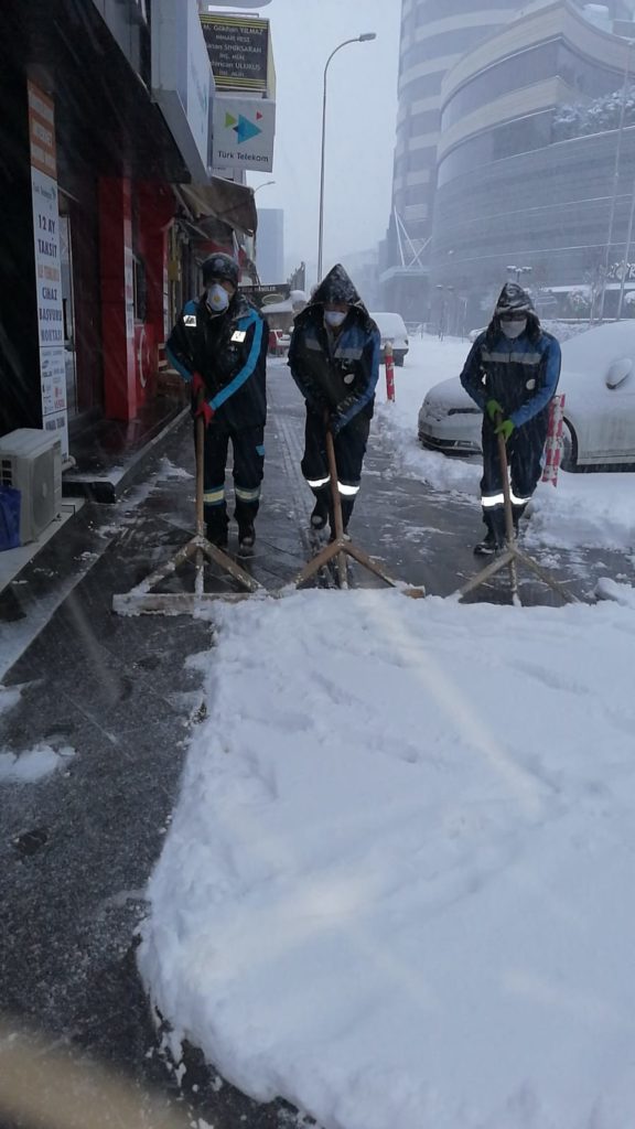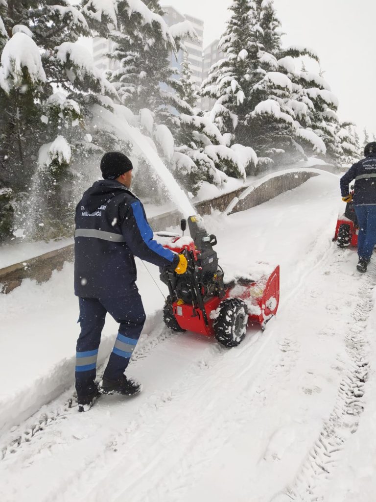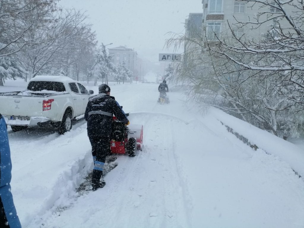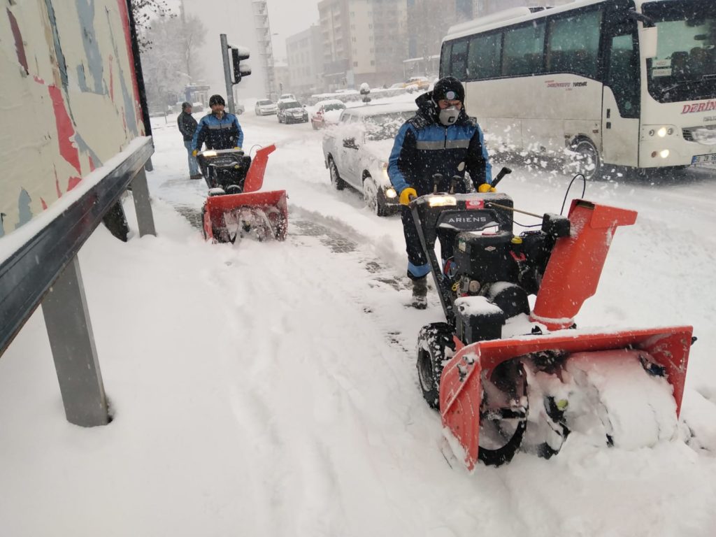 Kar küreme makinelerinin girmesinin mümkün olmadığı bölgelerde, yaya ekiplerce gerçekleştirilen çalışmalar şehrin çeşitli noktalarında sürüyor.