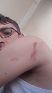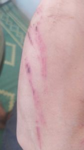Eve geldiğim andan itibaren yine aynı 6 kişi tarafından saldırıya uğradık. Beni, eşimi ve çocuklarımı darp ettiler. Konu, bir çantayı ayakkabı dolabının üzerine koymayla başladı. Sonrasında kendileri akrabalarını çağırarak ailem ve beni saldırıya uğrattı. Kollarımda, kafamda 6 tane dikiş var, kulak mememin yarısı yok. Şikayetçi olduk ve hala karşı dairemizde oturuyorlar. Can güvenliğimiz yok, uyuyamıyoruz” dedi.