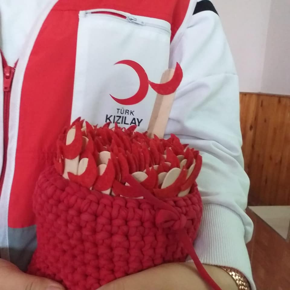 Nevşehir Merkez H. Lütfi Pamukçu ortaokulunda Kızılay’ı anlatan Genç Kızılay üyeleri sensiz olmaz yazılı ayraçlar dağıttı.