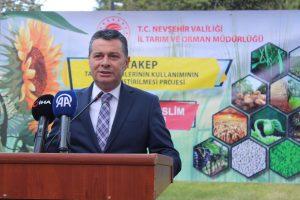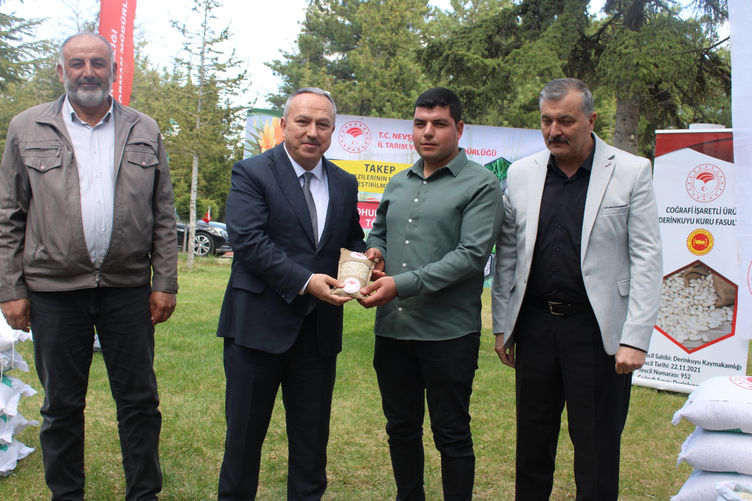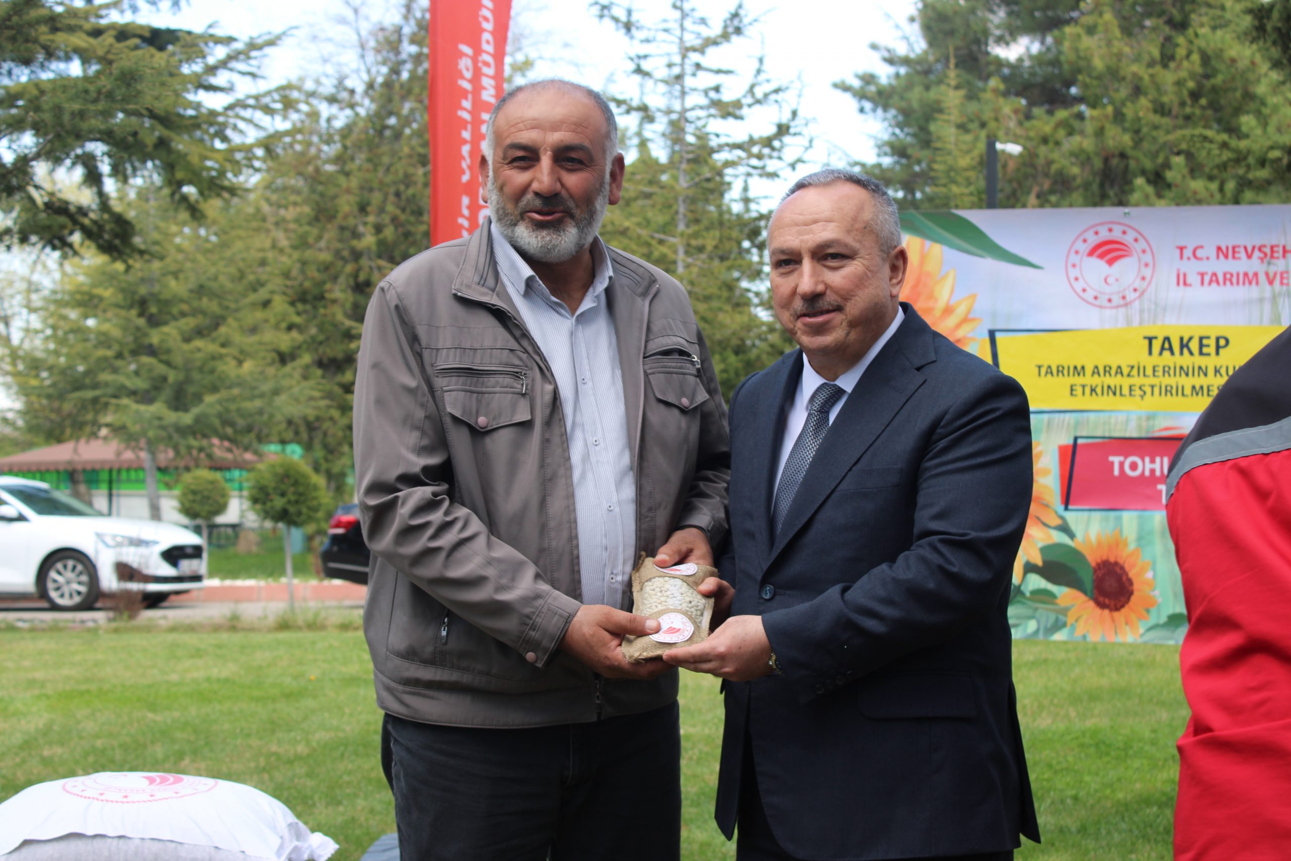 Burada konuşan Vali Fidan, Nevşehir’de, 5,38 milyon dekar yüzölçümünün yüzde 65’i olan 3,5 milyon dekarında 20 bin 291 çiftçinin tarımsal üretim yaptığını belirtti. Vali Fidan daha sonra; ”Nevşehir’in üretim desenine uygun olarak bu yıl, “Tarım Arazilerinin Kullanımının Etkinleştirilmesi Projesi” kapsamında toplamda 8 projenin uygulanmasına başlanmıştır. Proje çerçevesinde, 500 kilogram ayçiçeği, 18 bin 325 kilogram aspir, 230 kilogram çörek otu, 74 bin 700 kilogram nohut, 9 bin kilogram mercimek ve 49 bin 800 kilogram kuru fasulye dağıtılmak üzere toplamda 152 bin 555 kilogram tohum ve 112 bin 635 adet domates ile kapya biberi fidesinin 605 çiftçimize ulaştırılması planlanmaktadır. 20 yıl önce bölgede kuru fasulye üretim alanı 9 bin 530 dekar iken, bugün bu alan 121 bin dekara çıkmış ve birim alandan elde edilen verim 126 kilogramdan 371 kilograma yükselmiştir. Tarımsal üretim ve yerel kalkınma hedeflerine uygun olarak, KOP kapsamında son iki yılda 40 milyon TL bütçeli 15 proje uygulanmış ve bu yıl uygulanmak üzere 26,5 milyon TL bütçeli 4 projenin protokolü imzalanmıştır.” dedi.