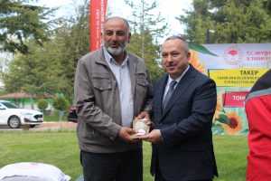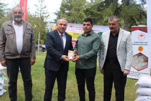 Vali Fidan tarafından, konuşmaların ardından çiftçi aileye temsili fasulye teslimi gerçekleştirildi.