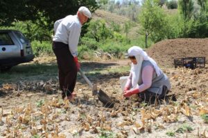Nevşehir’in Ürgüp ilçesine bağlı Mustafapaşa köyünde üretilen lale yumrusu hasadı başladı.