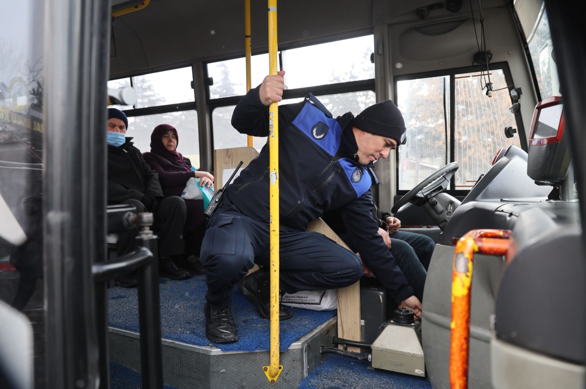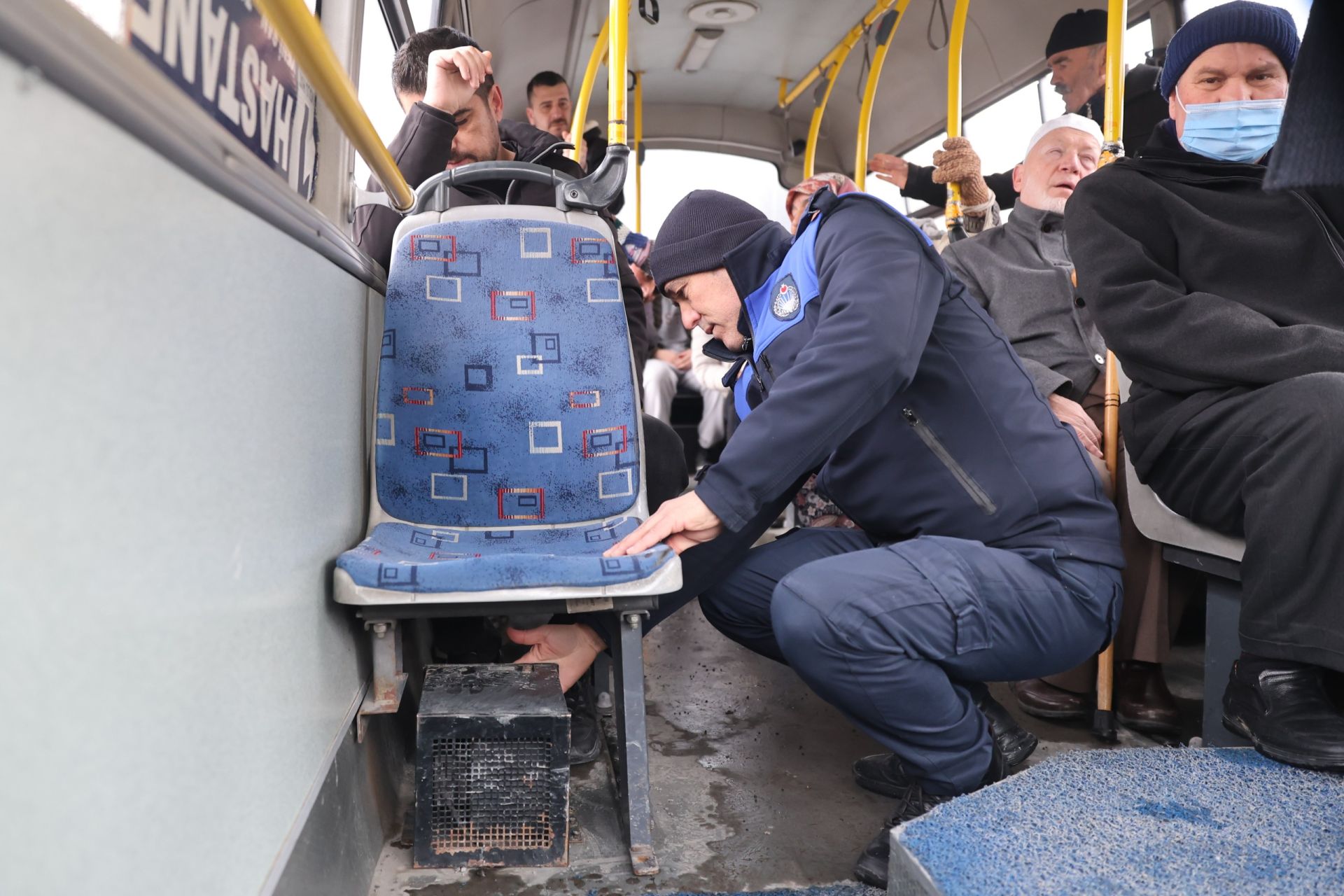 Özel halk otobüslerinde mevsim şartlarından dolayı araçların kalorifer aksamı, araç içi temizliği, koltuk düzenleri, el tutamağı, uyarı levhaları, iç aydınlatmaları ve araç içi temizliğini kontrol etti. Zabıta ekipleri tarafından 7/24 esasına göre kamera sistemi üzerinden canlı olarak takip edilen otobüslerde tespit edilen eksiklikler hakkında araç şoförlerine uyarılar yapılıyor.