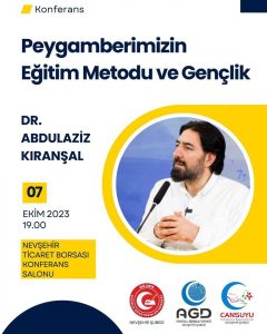 Şuurlu Öğretmenler Derneği (ÖĞDER), Anadolu Gençlik Derneği (AGD) ve Cansuyu Yardımlaşma ve Dayanışma Derneği’nin ortaklaşa düzenleyecekleri konferansa Dr. Abdulaziz Kıranşal konuşmacı olarak katılacak.