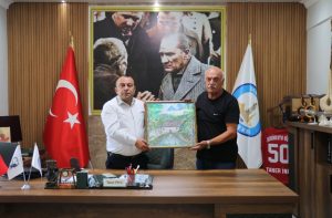 Yazar, şair ve sanatçılar Derinkuyu Belediye Başkanı Taner İnce’yi makamında ziyaret ettiler. Ziyarette ressam şair Mustafa Hamiş Başkan Taner İnce’ye akrilik boyalarla çizmiş olduğu bir manzara tabloyu hediye etti.