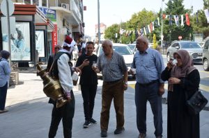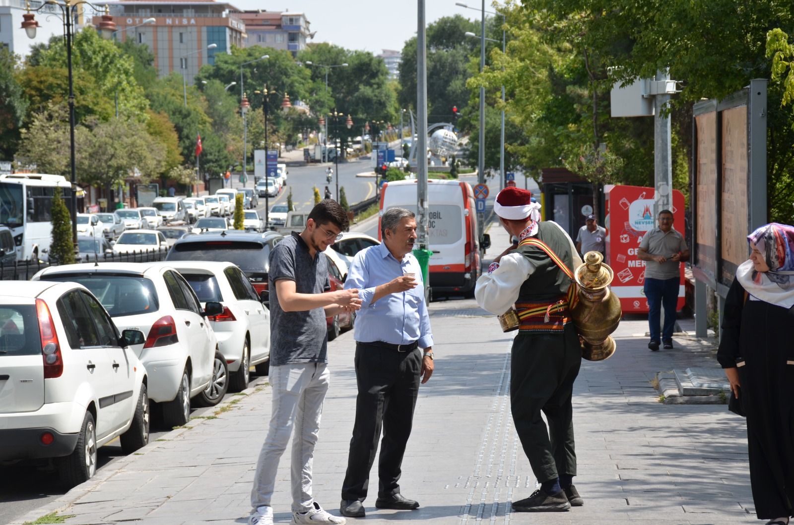 Hava sıcaklıklarının Nevşehirli vatandaşları olumsuz etkilediği kentte günlük işleri sebebiyle cadde ve sokaklara çıkmak zorunda kalan ve bunaltıcı sıcaktan etkilenen esnaf ve vatandaşlara ikramda bulunmak istediklerini söyleyen Belediye Başkanı Rasim Arı “Nevşehir’de son yılların en yüksek sıcaklıklarıyla karşı karşıyayız. Bu sebepten ötürü hem sokakta yürüyen vatandaşlarımıza hem de kavurucu sıcakla boğuşan esnaflarımıza bir nebze de olsa serinlemeleri için geleneksel kıyafetler giyen görevlilerimiz tarafından limonata ikram ediyoruz. Bütün vatandaşlarımıza çok zaruri olmadıkları sürece yakıcı sıcaklara maruz kalmamak adına dışarı çıkmamalarını tavsiye ediyoruz. 01 Ağustos 2025 Cuma gününe kadar Nevşehir geneli ana arterler, ara arterler ve mahallelerimizde birim görevlilerimiz tarafından sizleri az da olsa serinletmek için limonata ikramlarımız devam edecek” diye konuştu.