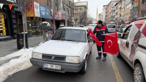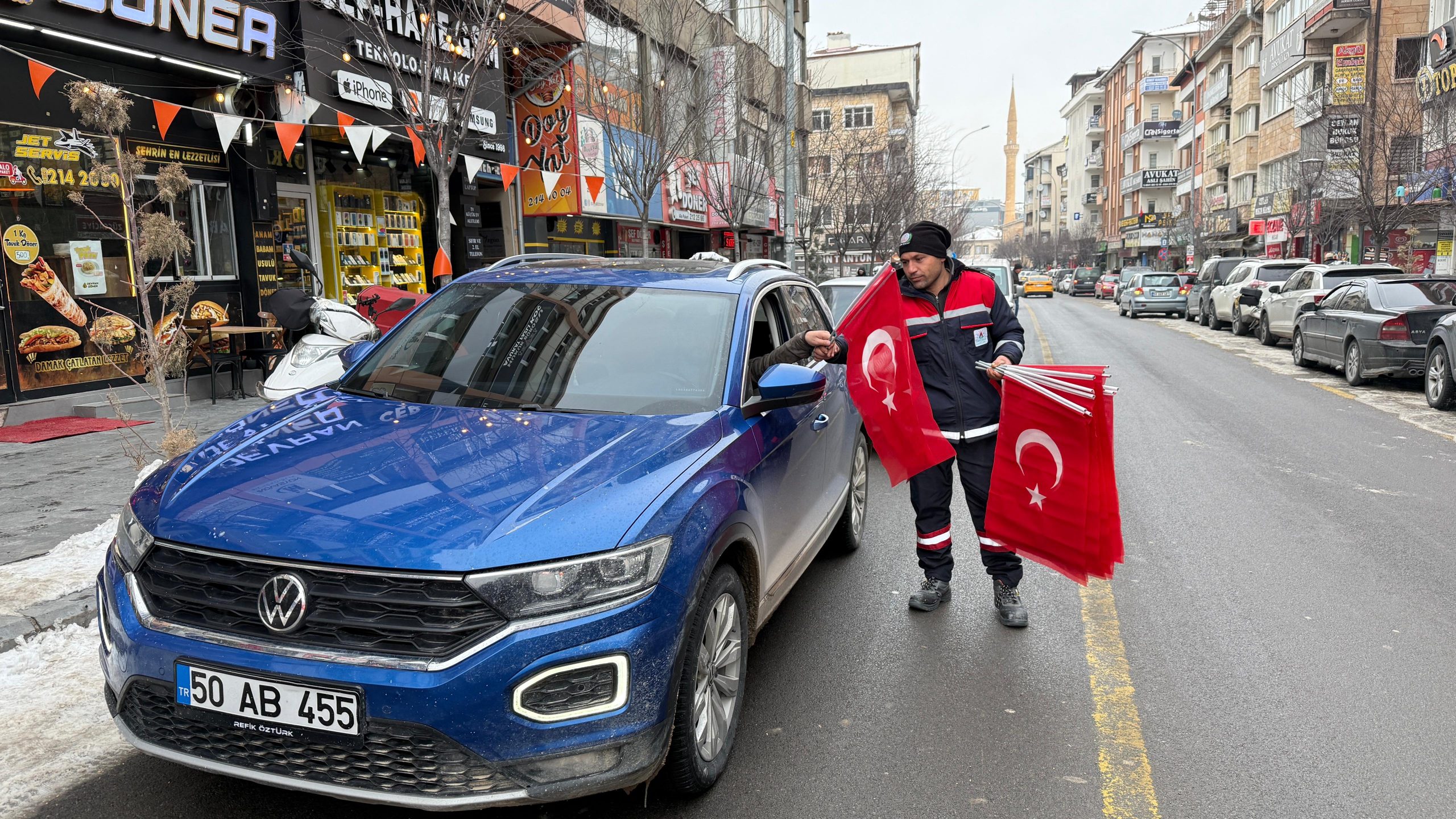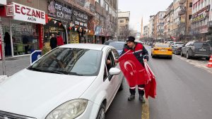 Nevşehir Belediyesi ekipleri, şehir genelinde Türk bayrağı dağıttı. Kampanya kapsamında cadde ve sokaklarda vatandaşlara ve esnafa belediye ekipleri tarafından Türk bayrağı dağıtarak anlamlı bir çalışmaya imza atıldı.