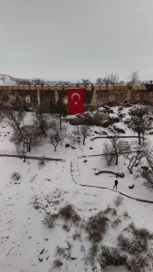 Nusaybin’de Türk Bayrağı’na yapılan saldırının ardından Nevşehir Belediye Başkanlığı tarafından şehir kırmızı beyaza büründü.