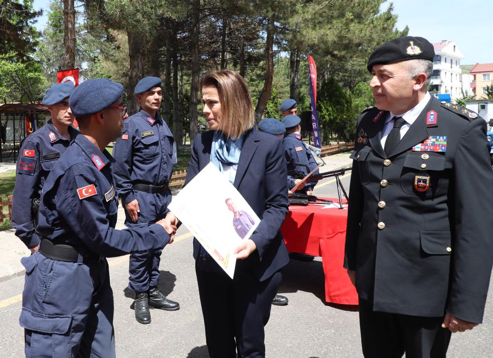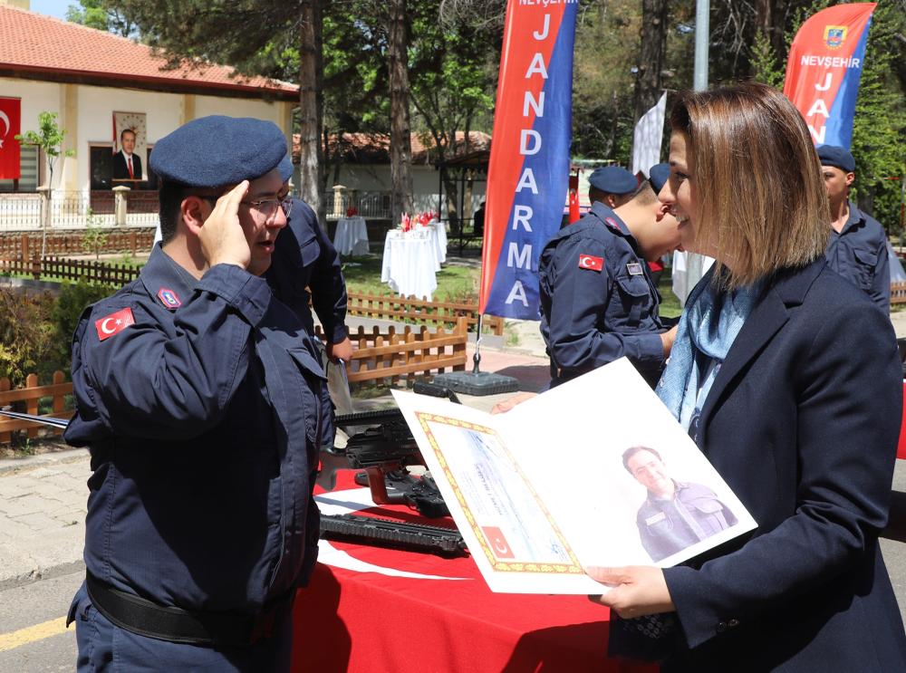 Tören, vatani görevini yerine getiren 8 engelli jandarma ere Nevşehir Valisi İnci Sezer Becel tarafından terhis belgelerinin verilmesi ile sona erdi.