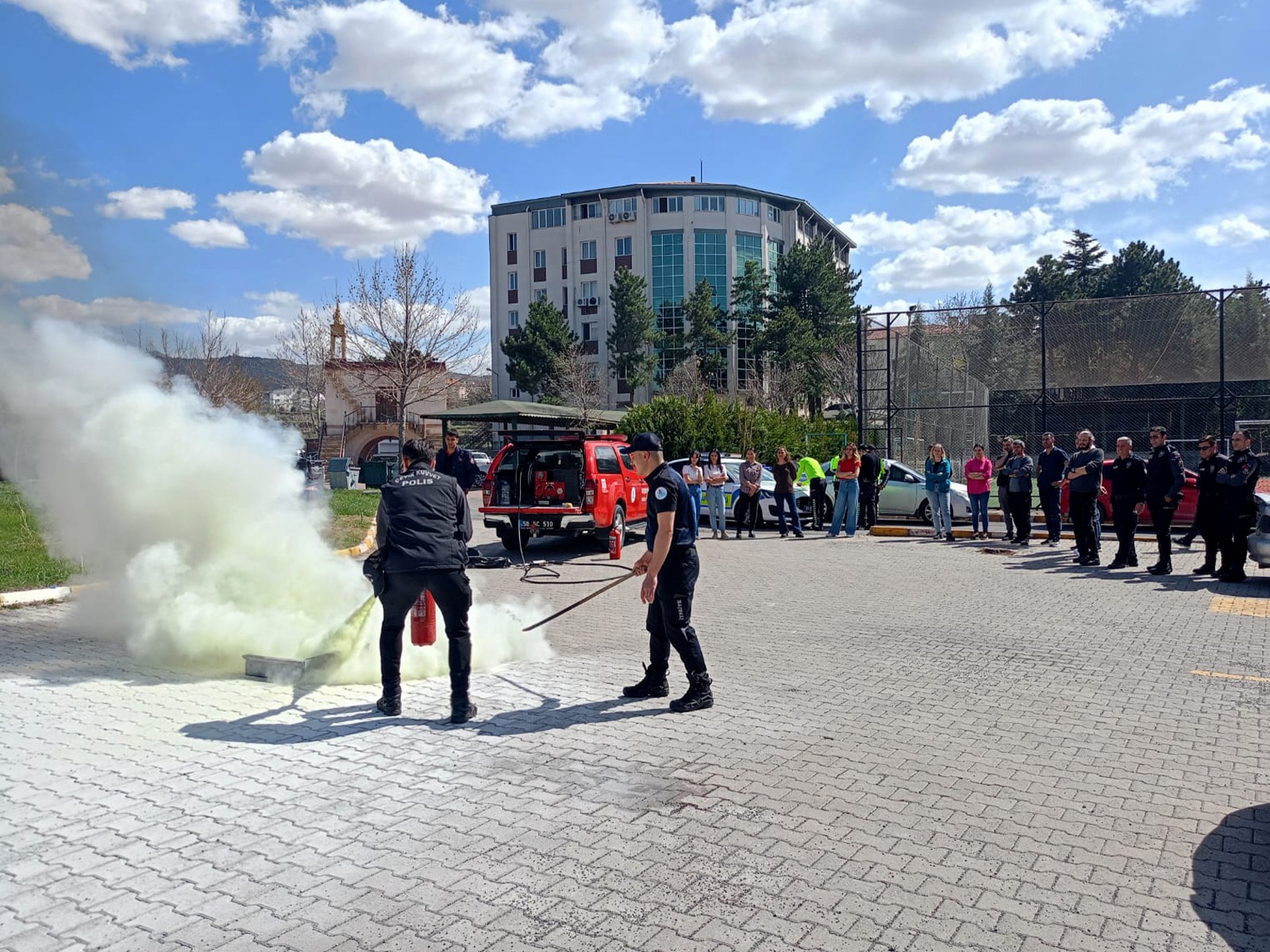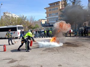Nevşehir İl Emniyet Müdürlüğü personeli ile İtfaiye Müdürlüğü ekipleri, olası yangın ve afet durumlarında can ve mal kaybını en aza indirmek amacıyla bina tahliyesi ve yangın tatbikatı gerçekleştirdi.
