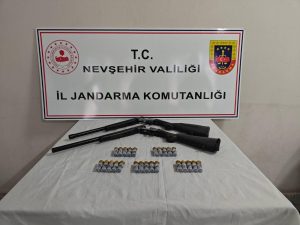 Bu kapsamda, Derinkuyu ilçesi otoyol gişelerinde yapılan denetimlerde sürücülüğünü A.Ç. ve M.B.’nin yaptığı araçlarda arama gerçekleştirildi. Yapılan kontrollerde 2 adet ruhsatsız yivsiz av tüfeği ve 25 adet av tüfeği fişeği ele geçirildi.