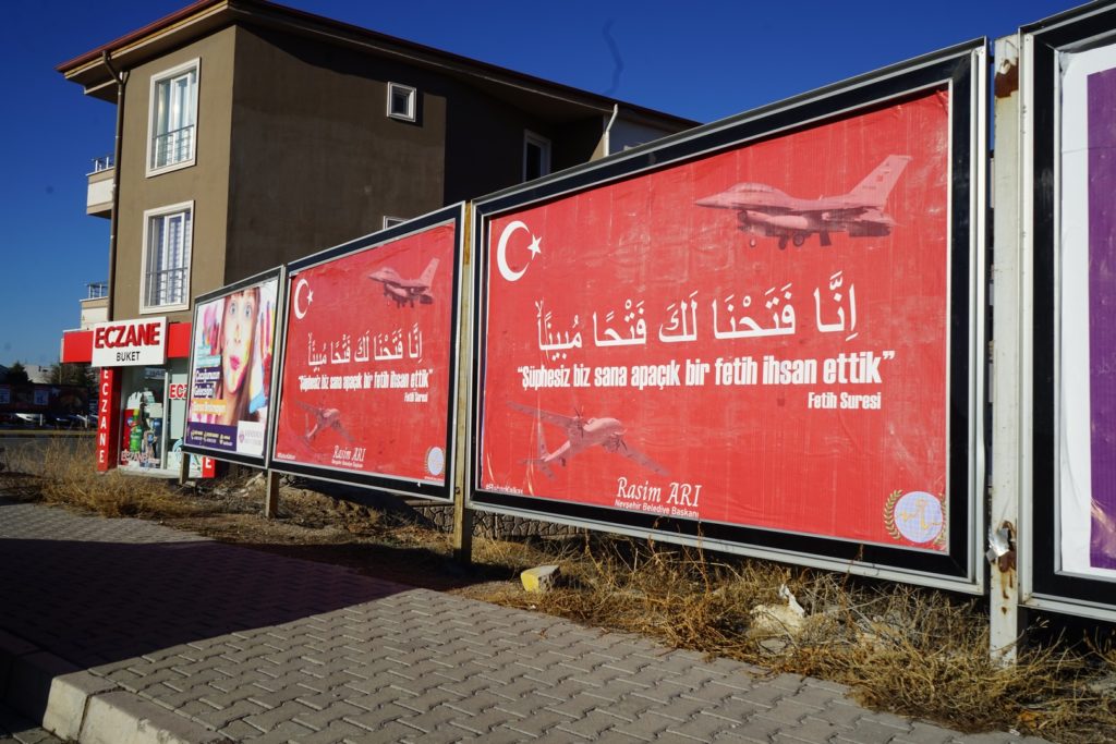 Fetih Suresi’nin ‘Şüphesiz Biz Sana Apaçık Bir Fetih İhsan Ettik’ şeklindeki 1. Ayeti ve Ay Yıldızlı Türk Bayrağının yer aldığı afişler harekatın başlaması ile birlikte kentin çeşitli noktalarındaki billboardlara asıldı.