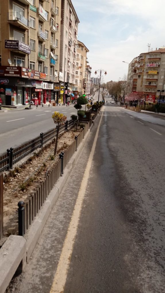 Emniyet güçlerinin vatandaşları evde kalın uyarısında bulunmasının dışında normal zamanlarda oldukça kalabalık olan caddede çalışmak zorunda olan ve dışarı çıkanların dışında insan görebilmek bir hayli güç.