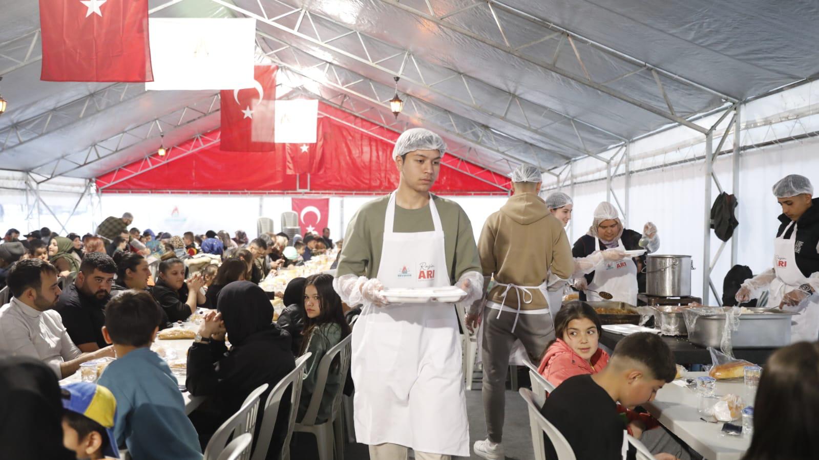 Bugün 12. gününü geride bıraktığımız Ramazan’ın manevi güzelliklerini büyük bir aile sofrasında yaşamak isteyen vatandaşlarla dolup taştığını ifade eden Başkan Arı, iftar yapmak için gelen vatandaşların aynı yemeğin yanı sıra kardeşlik ve huzuru paylaştığını söyledi.