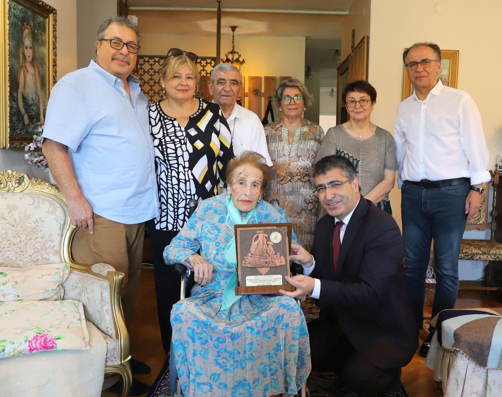 Prof. Dr. Zeynep Korkmaz ile bir süre görüşen Rektör Aktekin, ayrıca kendilerine değerli bağışlarından dolayı plaket ve teşekkür belgesi verdi.