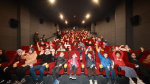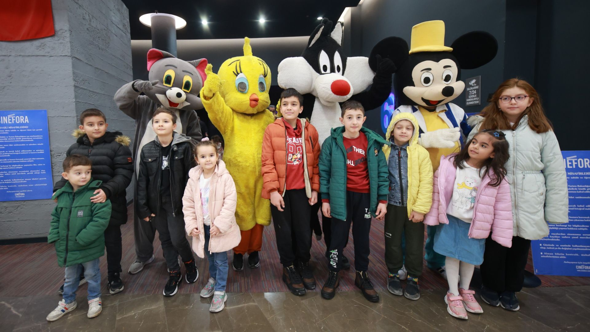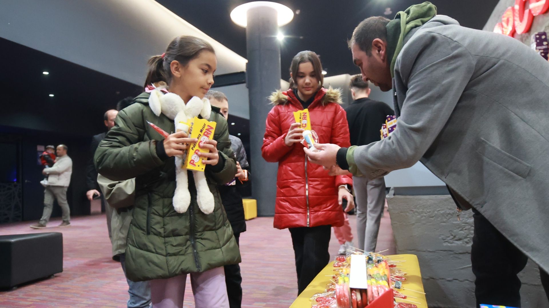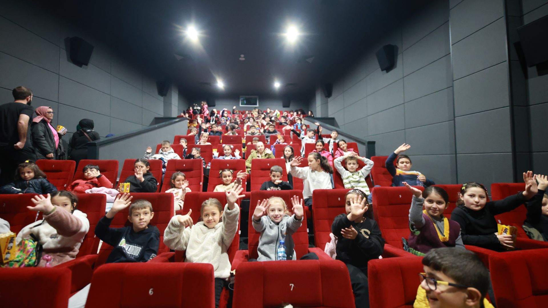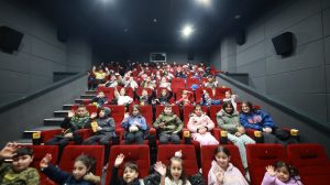 Sinema yerleşkesinde bulunan salonların tamamını dolduran çocuklar gönüllerince eğlenip film keyfi yaşarken veliler ise salon dışında çocuklarını heyecanla bekledi.