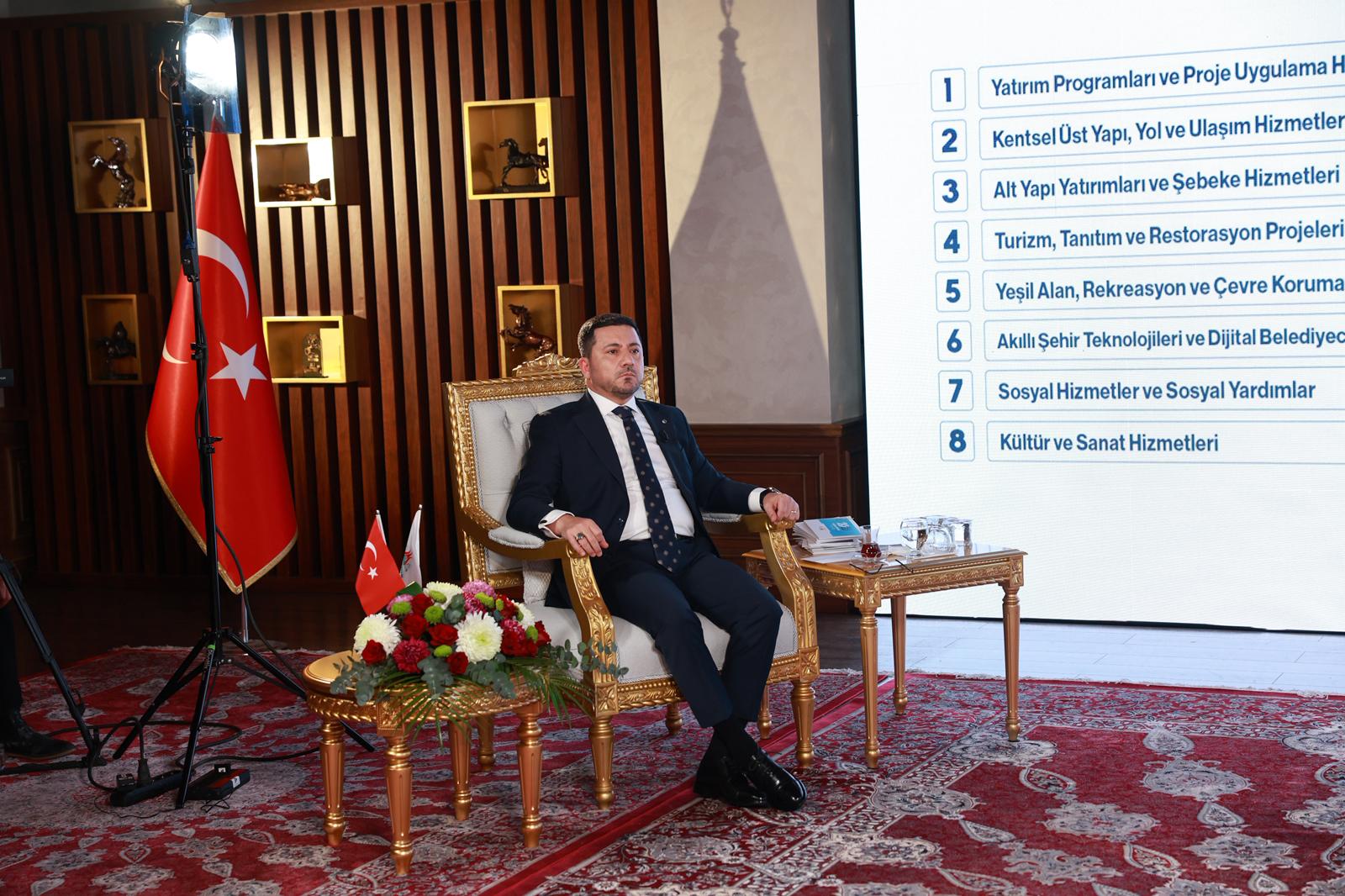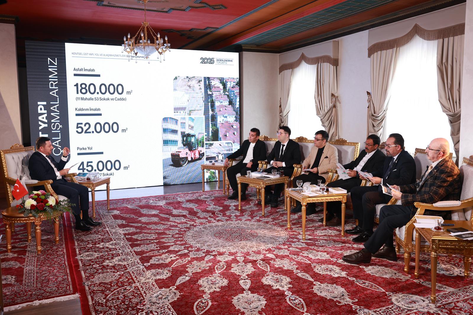Belediye Başkanı Rasim Arı’nın sosyal medya hesapları facebook, instagram ve twitter (x) ile youtube kanalı üzerinden canlı olarak yayınlanan 2025 Yılı Değerlendirme toplantısında Yatırım Programı ve Proje Uygulama Hizmetleri; Kentsel Üstyapı, Yol ve Ulaşım Hizmetleri; Altyapı Yatırımları ve Şebeke Hizmetleri; Turizm, Tanıtım ve Restorasyon Projeleri;