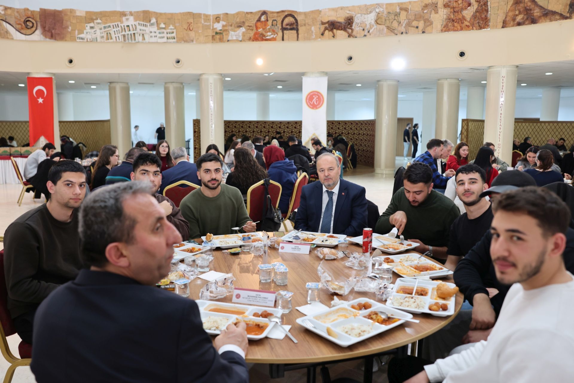 Nevşehir İl Protokolü ve hayırsever iş insanları, Nevşehir Hacı Bektaş Veli Üniversitesi (NEVÜ)’de “İftar Sofrasında Öğrencilerimizle Ramazan Sevincini Paylaşıyoruz” temasıyla düzenlenen programda öğrencilerle bir araya geldi.