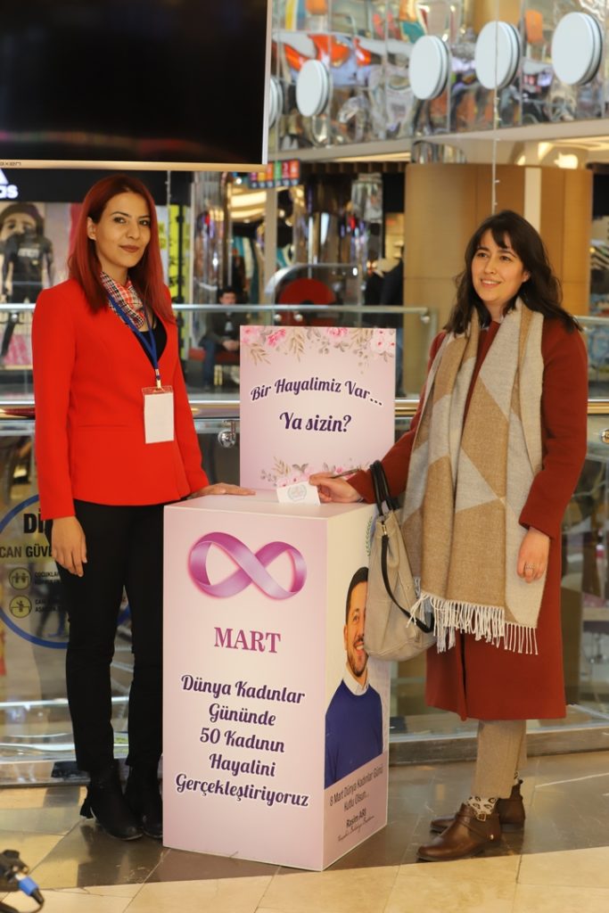 Kadınlarımız bu kutulara dileklerini atacaklar ve sonrasında yapılacak olan değerlendirmeler sonucu 8 Mart Dünya Kadınlar Günü’nde 50 hemşehrimizin hayalini gerçekleştireceğiz. O gün ayrıca kadınlarımız için düzenleyeceğimiz programlarda farklı sürprizlerimiz de olacak. “ dedi.