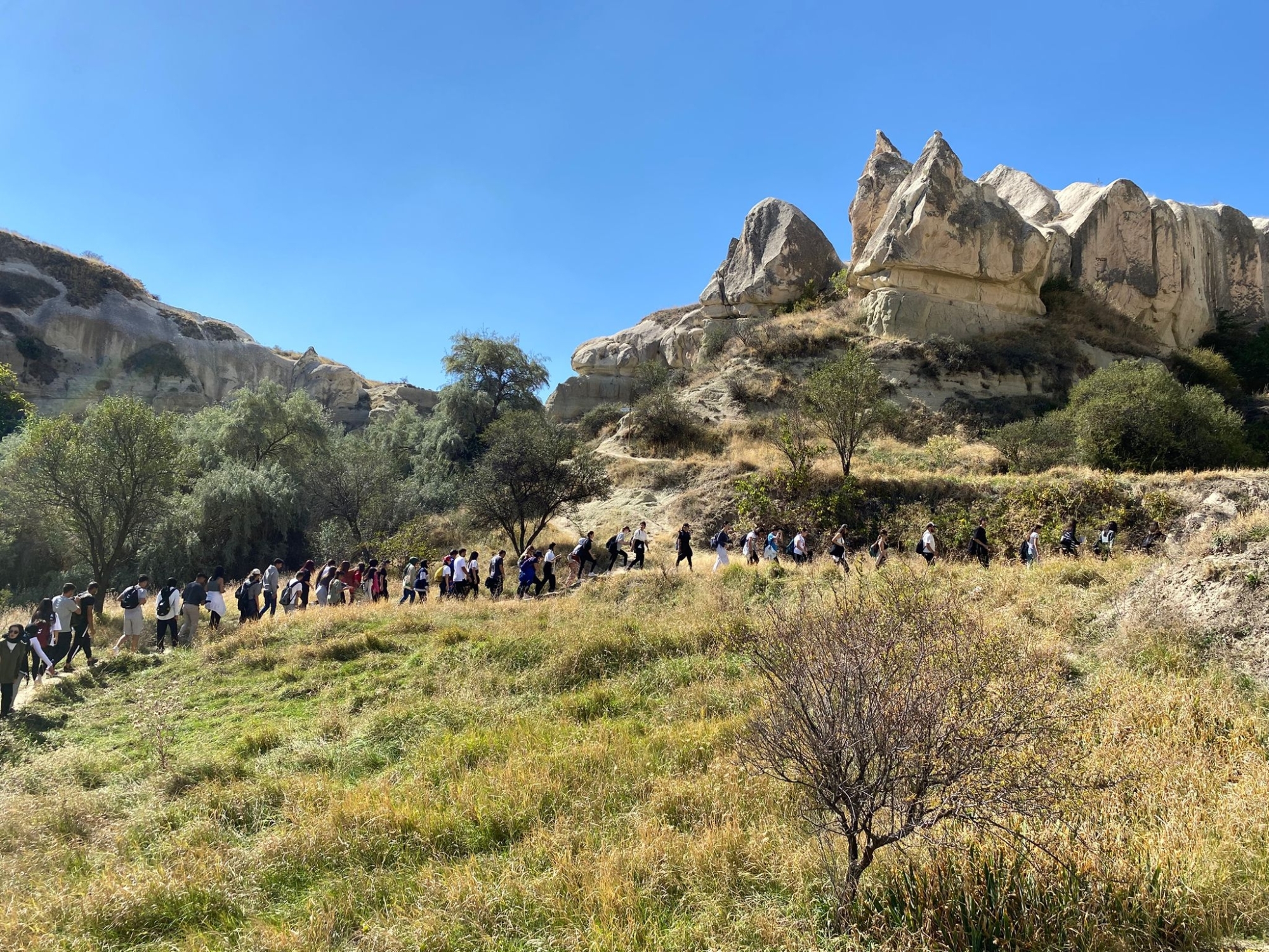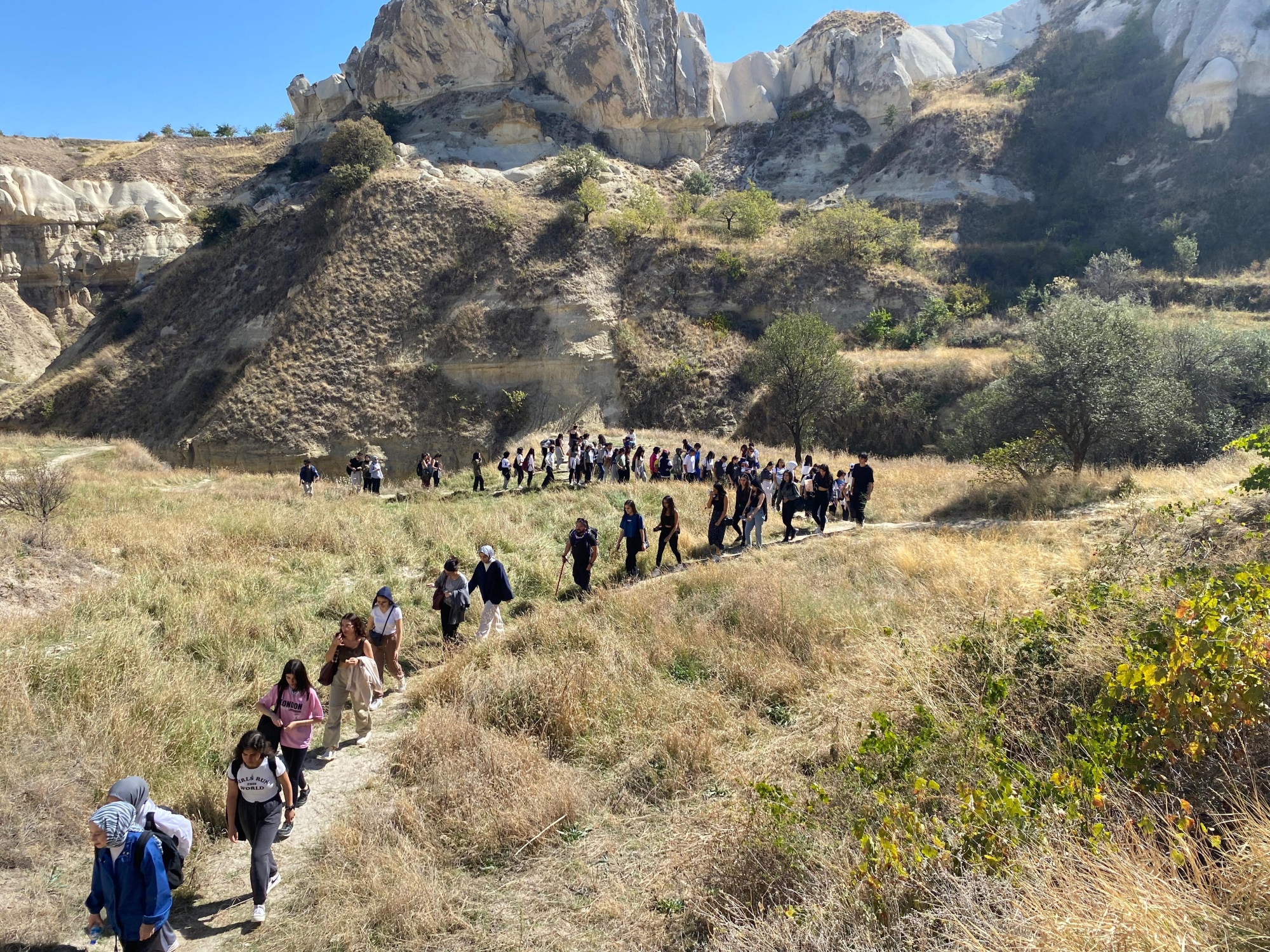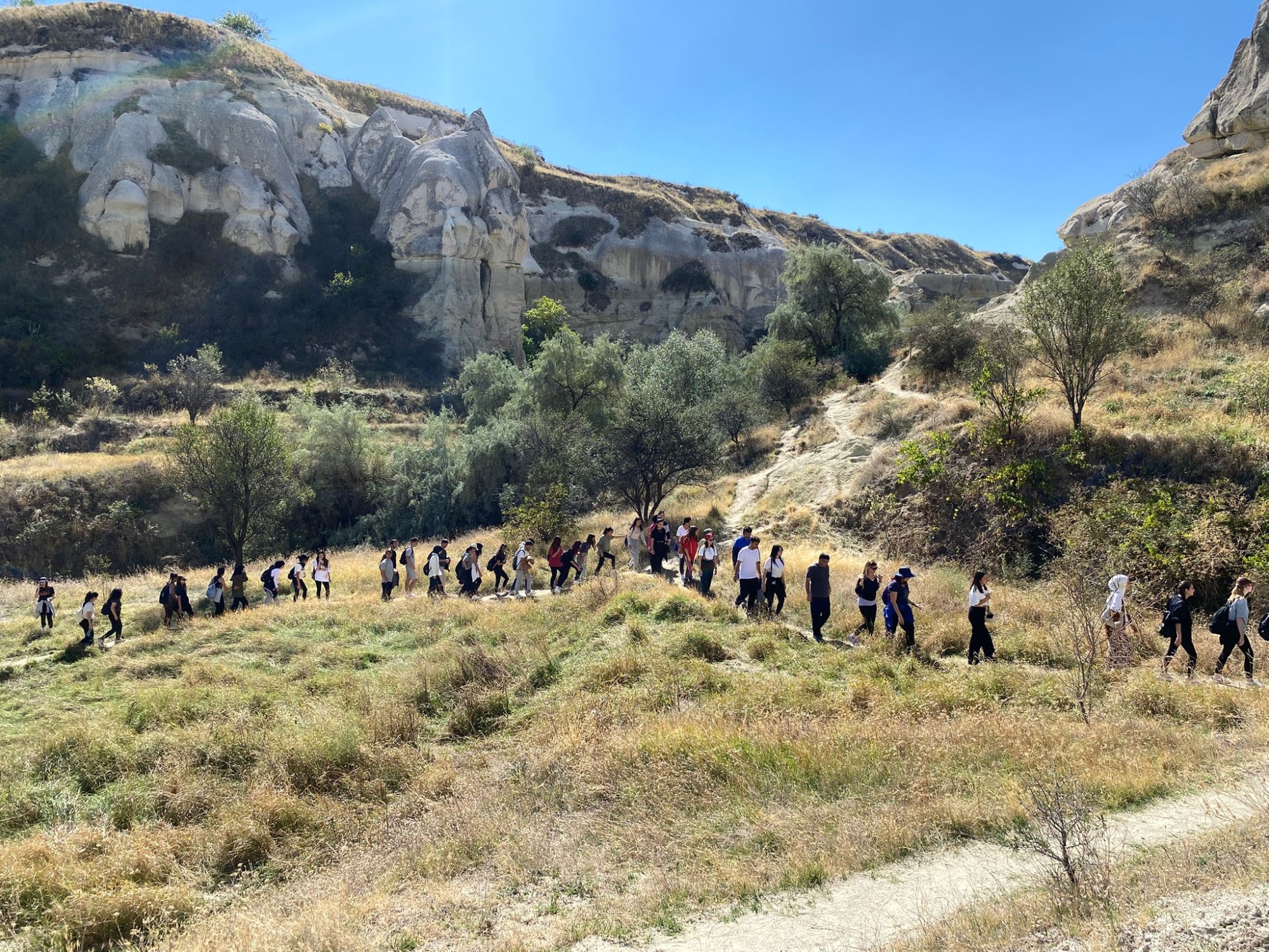 Nevşehir Hacı Bektaş Veli Üniversitesi (NEVÜ)’ye yeni başlayan 1. sınıf öğrencilerine yönelik Kapadokya’nın tarihi ve doğal güzellikleri arasında vadi yürüyüşü düzenlendi.