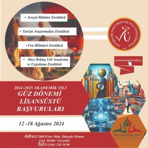 Nevşehir Hacı Bektaş Veli Üniversitesi (NEVÜ), 2024-2025 Akademik Yılı Güz Yarıyılı Lisansüstü Programları için öğrenci alacak.