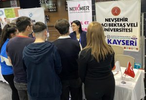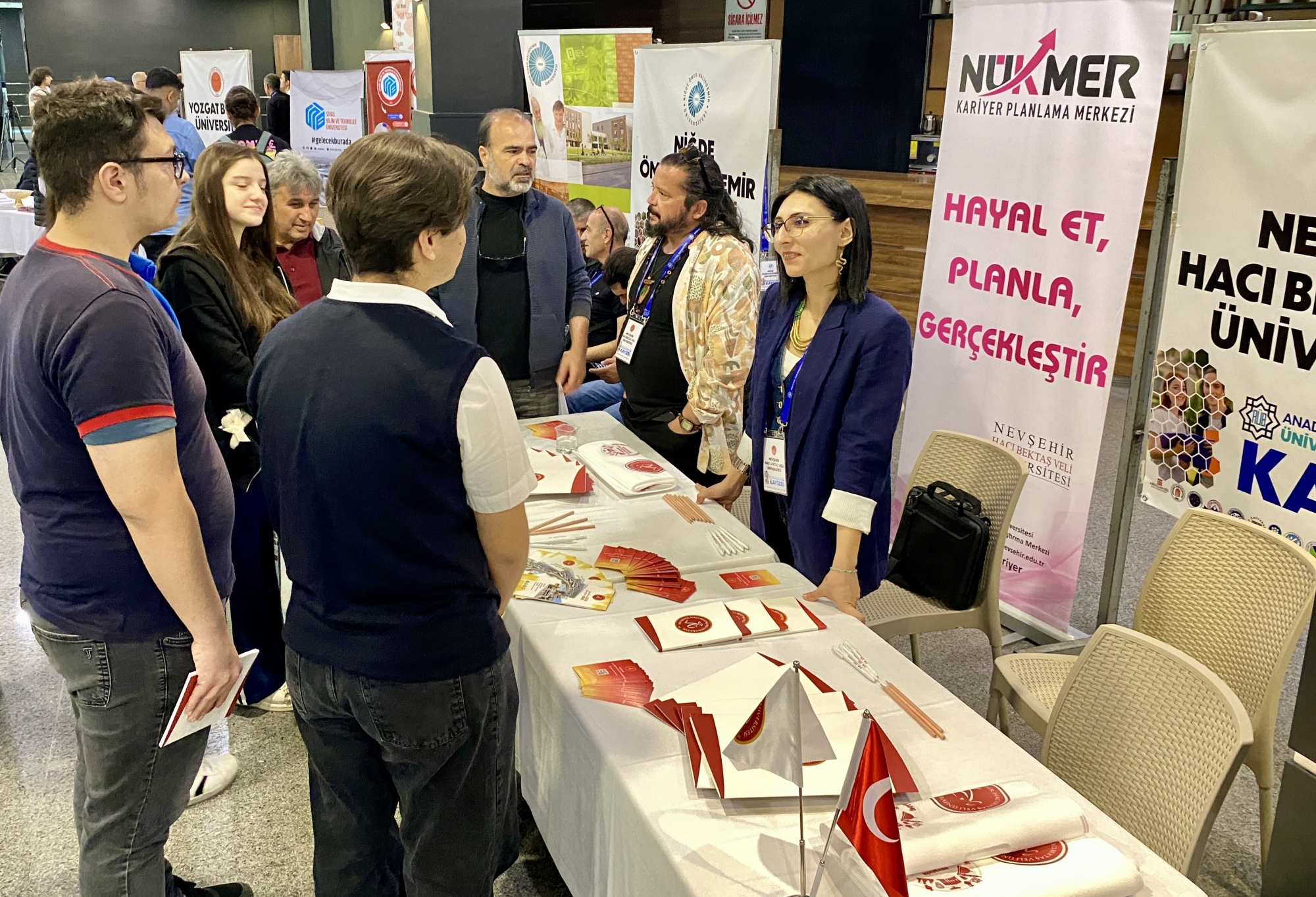 NEVÜ Kariyer Planlama Uygulama ve Araştırma Merkezi (NÜKMER) tarafından açılan NEVÜ tanıtım standını ziyaret ederek NÜKMER Müdürü Dr. Öğr. Üyesi Toprak Keskin ve Müdür Yardımcısı Arş. Gör. Tayyibe Işıl Doğan’dan bilgi alan Rektörü Prof. Dr. Semih Aktekin, ayrıca standı ziyaret eden öğrenci ve ziyaretçilerle de sohbet ederek kendilerine üniversite hakkında bilgi verdi.