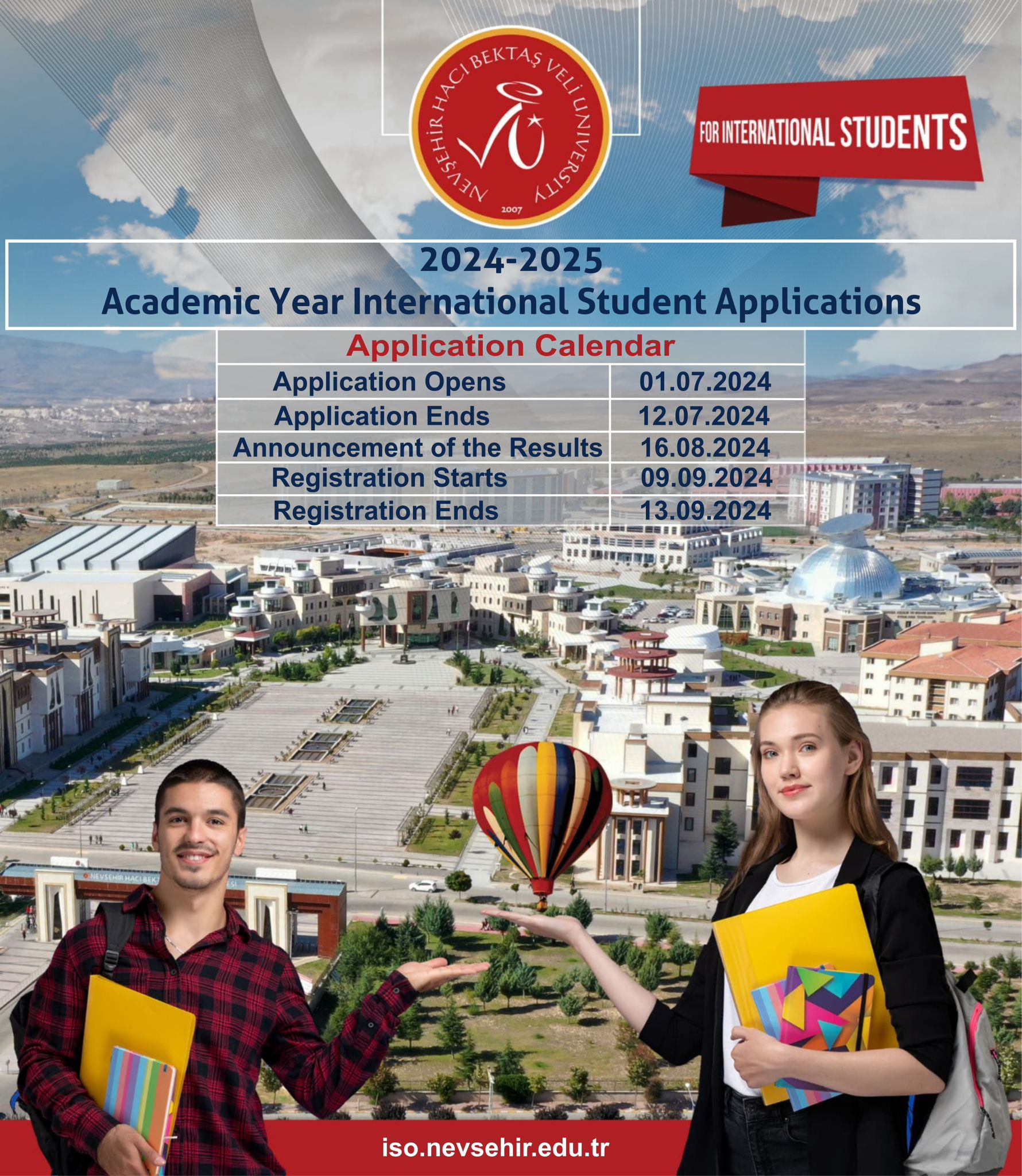 2024-2025 eğitim-öğretim yılı için uluslararası öğrenciler başvurularını 01 Temmuz – 12 Temmuz 2024 tarihleri arasında https://ubys.nevsehir.edu.tr/AIS/ApplicationForms/Home/Index?apptype=3 linkinden çevrim içi olarak yapacaklar. Başvuru sırasında beyan edilen bilgi ve belgelerin eksik, hatalı veya sahte olması durumunda adaylar kayıt yaptırmış olsalar dahi kayıtları komisyon kararı ile iptal edilecek.