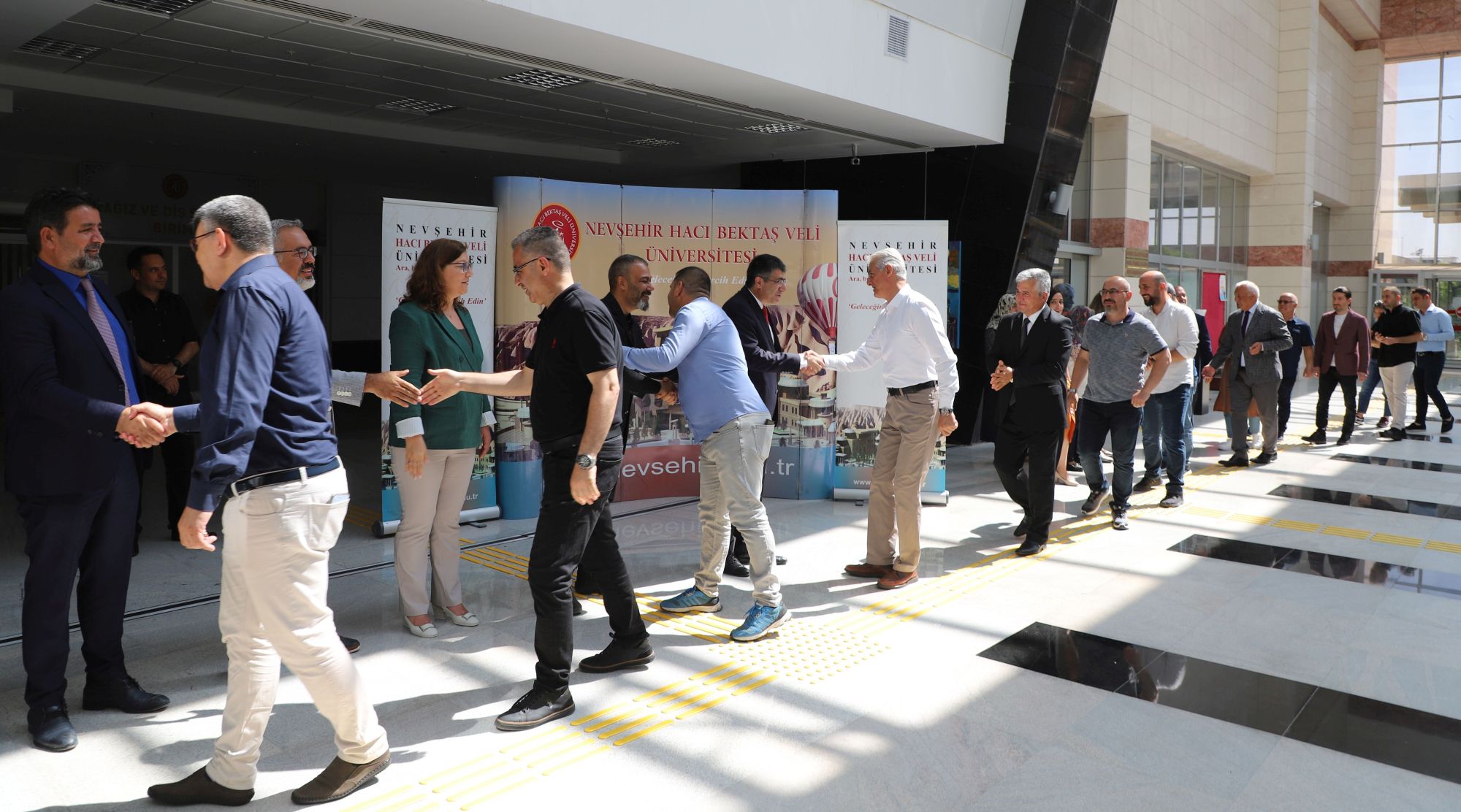 Nevşehir Hacı Bektaş Veli Üniversitesi (NEVÜ) Rektörü Prof. Dr. Semih Aktekin’in katılımlarıyla NEVÜ Vali Şinasi Kuş Kültür ve Kongre Merkezin Fuaye Alanı’nda gerçekleştirilen ‘Kurban Bayramı’ bayramlaşma törenine; Rektör Yardımcıları Prof. Dr. Özlem Fındık, Prof. Dr. Şahlan Öztürk ve Prof. Dr. Mutluhan Akın, Genel Sekreter Nihat Çavuşoğlu, fakülte dekanları, dekan yardımcıları, enstitü ve yüksekokul müdürleri ve müdür yardımcıları, daire başkanları, akademik ve idari personel katıldı.