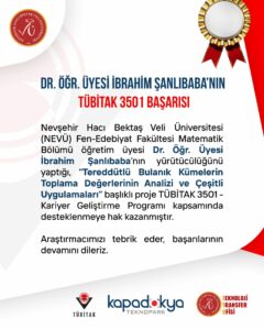 Nevşehir Hacı Bektaş Veli Üniversitesi (NEVÜ) Fen-Edebiyat Fakültesi Matematik Bölümü öğretim üyesi Dr. Öğr. Üyesi İbrahim Şanlıbaba’nın yürütücülüğünü yaptığı, “Tereddütlü Bulanık Kümelerin Toplama Değerlerinin Analizi ve Çeşitli Uygulamaları” başlıklı proje TÜBİTAK 3501 – Kariyer Geliştirme Programı kapsamında desteklenmeye hak kazandı.