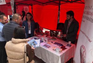Alanında uzman personel ile fuarda yerini alan NEVÜ tanıtım standına üniversite adayı gençler ve alileri yoğun ilgi gösterdi. Standı ziyaret eden üniversite adayı gençler ve ailelerine Nevşehir merkez yerleşke ile birlikte ilçelerdeki toplam 8 kampüste; 10 Fakülte, 9 Meslek Yüksekokulu, 1 Yüksekokul, 4 Enstitü, 19 Araştırma Merkezi, 57 Öğrenci Kulübü ve 12 Öğrenci Topluluğu bulunan, gelişmiş akademik ve fiziki alt yapısı, nitelikli akademik kadrosu, geniş ölçekli bölüm ve programları, kendi alanında Türkiye’nin önde gelen Fakülte, Enstitü, Yüksekokul ve Meslek Yüksekokulları, sosyal tesisleri ve barınma olanakları hakkında bilgilendirmelerde bulunuldu.