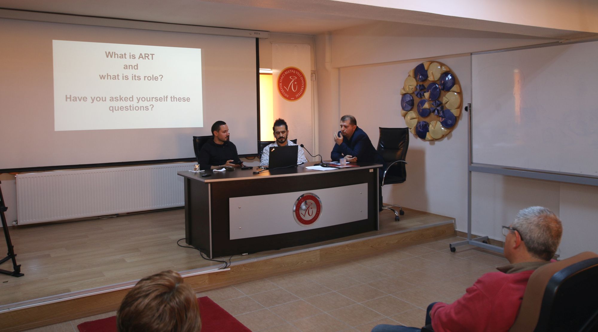 Söyleşiye, Avanos Güzel Sanatlar MYO Müdürü Öğr. Gör. Bahadır Cem Erdem, ASEM Müdürü Doç. Dr. Betül Aytepe Serinsu, NEVÜ akademik personeli ve öğrencileri katıldı.