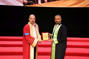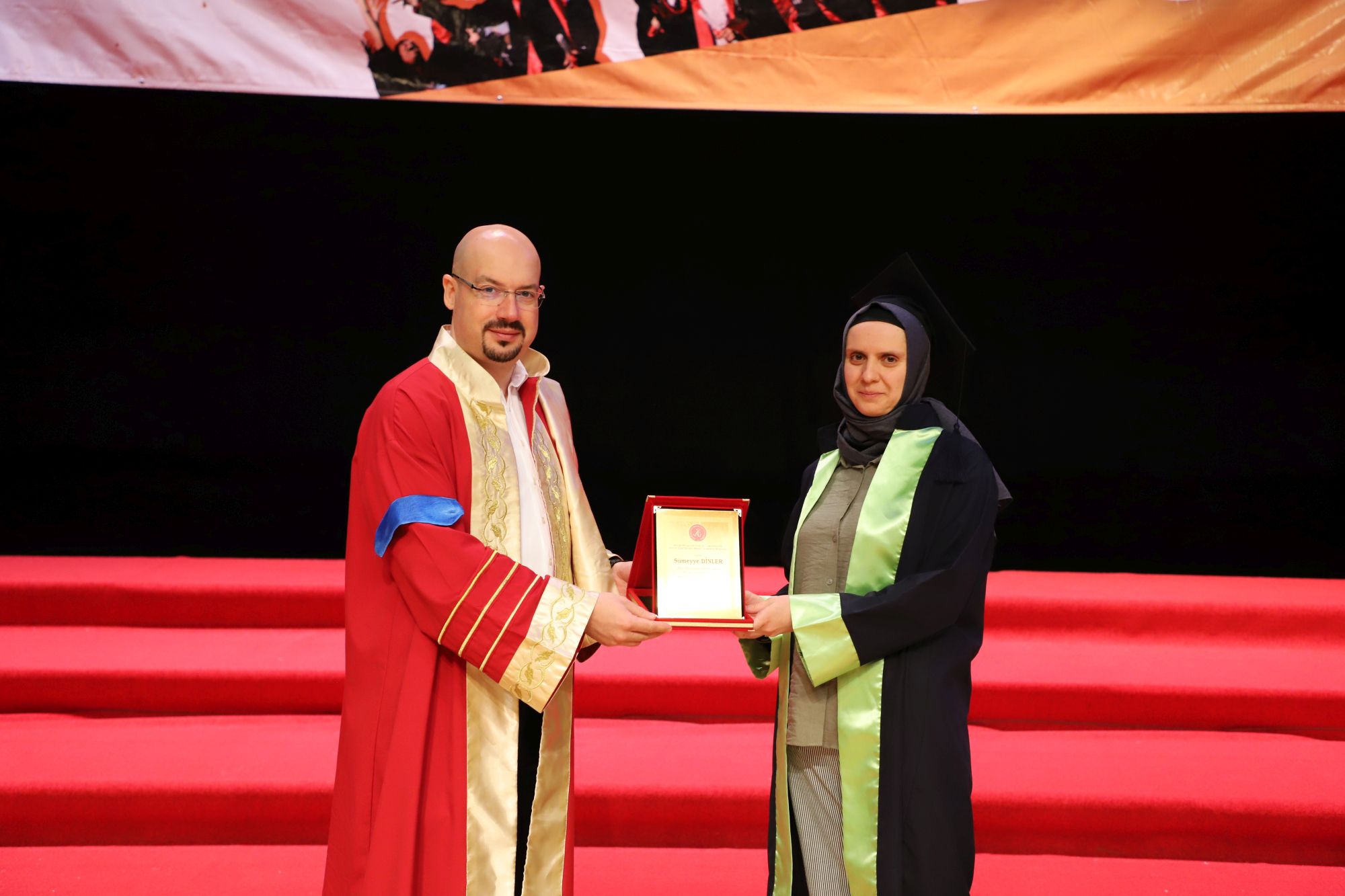 Sözlerime son verirken mezuniyetinizi tekrar tebrik ediyor, sizlerin bugünlere gelmenizde pay sahibi olan ailelerinizi, ülkenizi, üniversitemizi unutmamanızı talep ediyorum. Çünkü okul olarak biz bir aileyiz. Bundan sonraki hayatınızda hepinize sağlıklı, mutlu, hayırlı ve başarılarla dolu bir ömür diliyorum” diye konuştu.
