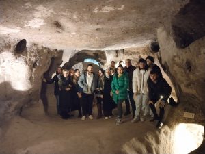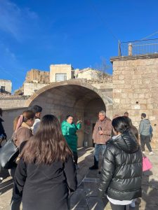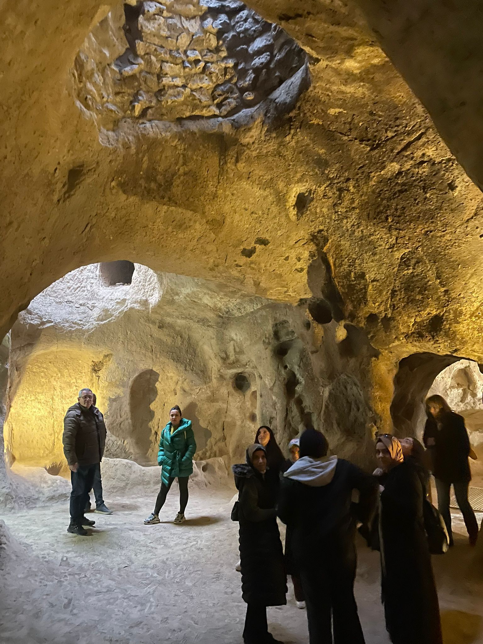 Nevşehir Hacı Bektaş Veli Üniversitesi (NEVÜ) Avanos Güzel Sanatlar Meslek Yüksekokulu (MYO) El Sanatları Bölümü Mimari Dekoratif Sanatlar Programı öğrencileri Sanat Tarihi dersi kapsamında Mazı yeraltı şehri ve kaya mezarları gezisine katıldı.