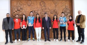 Şampiyonluk sevinci yaşayan NEVÜ Erkek takımı sporcuları; İbrahim Kalkan, Serhat Akbalık, Süleyman İlhan Sevgi ve müsabakalarda dördüncü olan NEVÜ Bayan Takımı sporcuları; Fadime Dönmez, Fatma Nur Kabakçı, Kübra Boyraz, Rektör Aktekin’e desteklerinden dolayı teşekkür ettiler.