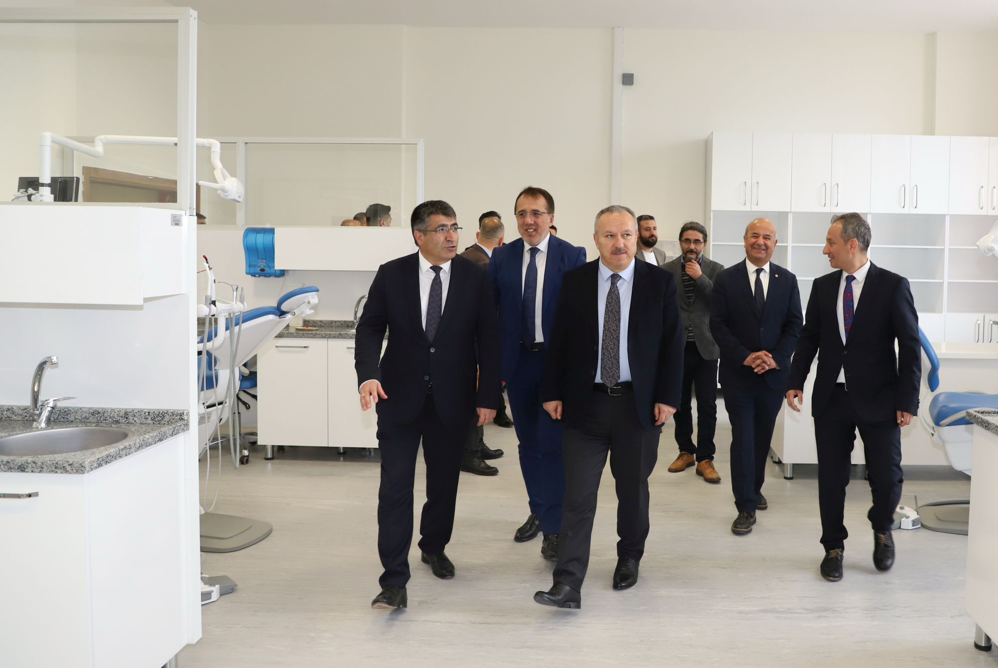 NEVÜ İlahiyat Fakültesi Dekanı Prof. Dr. Zülfikar Durmuş tarafından edilen duanın ardından katılımcılar eşliğinde NEVÜ Diş Hekimliği Fakültesi Ağız ve Diş Sağlığı Uygulama ve Araştırma Merkezi’nin açılışını gerçekleştiren Nevşehir Valisi Ali Fidan, Rektör Prof. Dr. Semih Aktekin ve protokol üyeleri, Ağız ve Diş Sağlığı Uygulama ve Araştırma Merkezi’ni gezerek, incelemelerde bulundu.