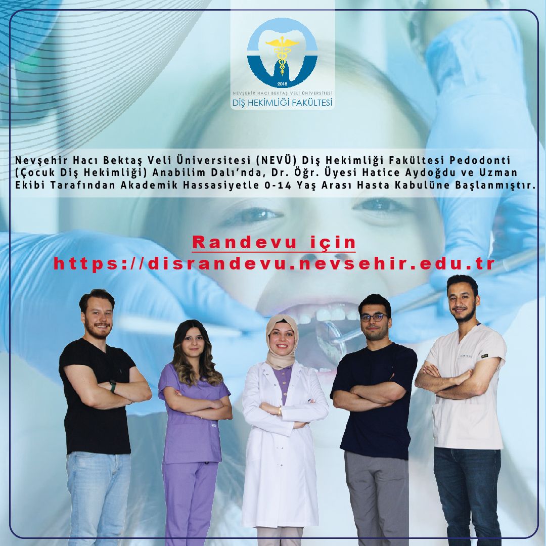 Nevşehir Hacı Bektaş Veli Üniversitesi (NEVÜ) Diş Hekimliği Fakültesi Pedodonti (Çocuk Diş Hekimliği) Anabilim Dalı’nda, Dr. Öğr. Üyesi Hatice Aydoğdu ve alanında deneyimli uzman ekibi tarafından 0-14 yaş arası çocuk hastaların kabulüne başlandı.
