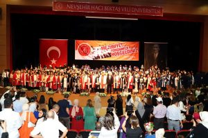Nevşehir Hacı Bektaş Veli Üniversitesi (NEVÜ) Eğitim Fakültesi 2021-2022 eğitim öğretim yıllı mezunları, Vali Şinasi Kuş Kültür ve Kongre Merkezi’nde yapılan törenle diplomalarını aldı.