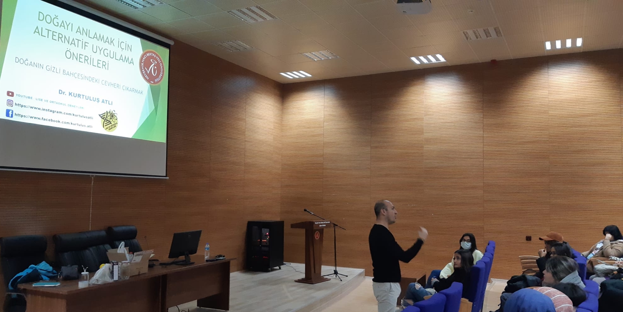 Eğitim Fakültesi Şehit Eren Bülbül Konferans Salonu’nda düzenlenen etkinliğe, Eğitim Fakültesi Dekan Yardımcısı Doç. Dr. Şeyhmus Aydoğdu, NEVÜ akademik ve idari personeli ile öğrenciler katıldı. NEVÜ Eğitim Fakültesi Fen Bilgisi Eğitimi Anabilim Dalı Öğretim Üyesi Dr. Emel Atlı tarafından düzenlenen ve Biyoloji Öğretmeni Dr. Kurtuluş Atlı tarafından gerçekleştirilen seminerde, doğa yoksunluğunun etkileri, giderilme yöntemleri ile öğretmenlere, öğretmen adaylarına mesleki tavsiyeler konuşuldu.