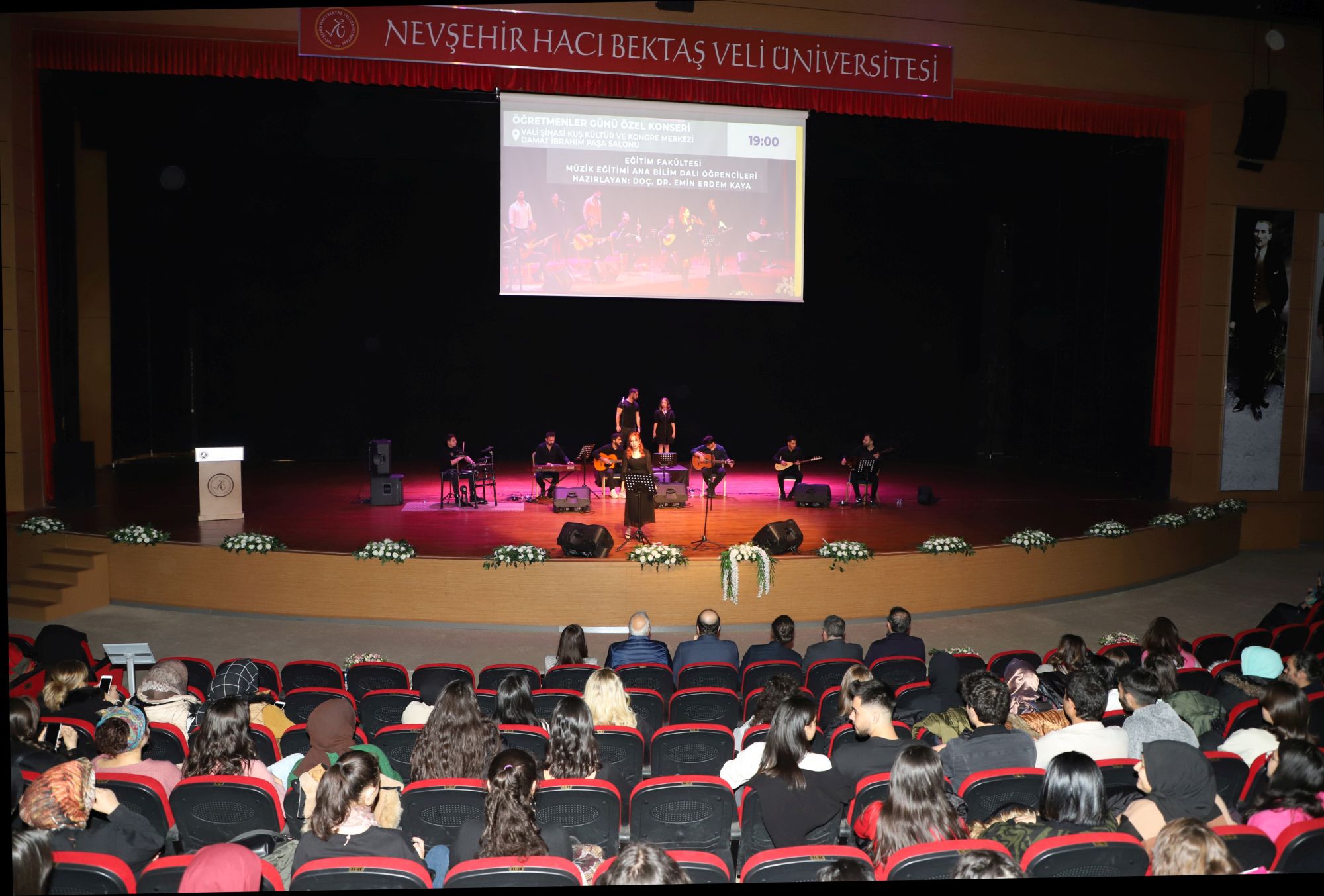 Nevşehir Hacı Bektaş Veli Üniversitesi (NEVÜ) Rektörü Prof. Dr. Semih Aktekin, 24 Kasım Öğretmenler Günü dolayısıyla Eğitim Fakültesi Müzik Eğitim Ana Bilim Dalı öğrencilerinin sahne aldığı ‘Öğretmenler Günü Özel Konseri’ne katıldı.