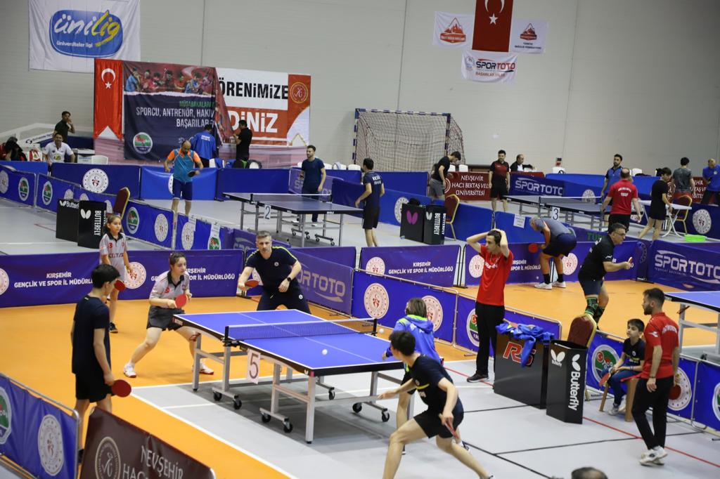 Nevşehir Valisi İnci Sezer Becel, NEVÜ Rektörü Prof. Dr. Semih Aktekin ve protokol üyeleri daha sonra masa tenisi açılış atışını yaparak lig müsabakalarını başlattı.