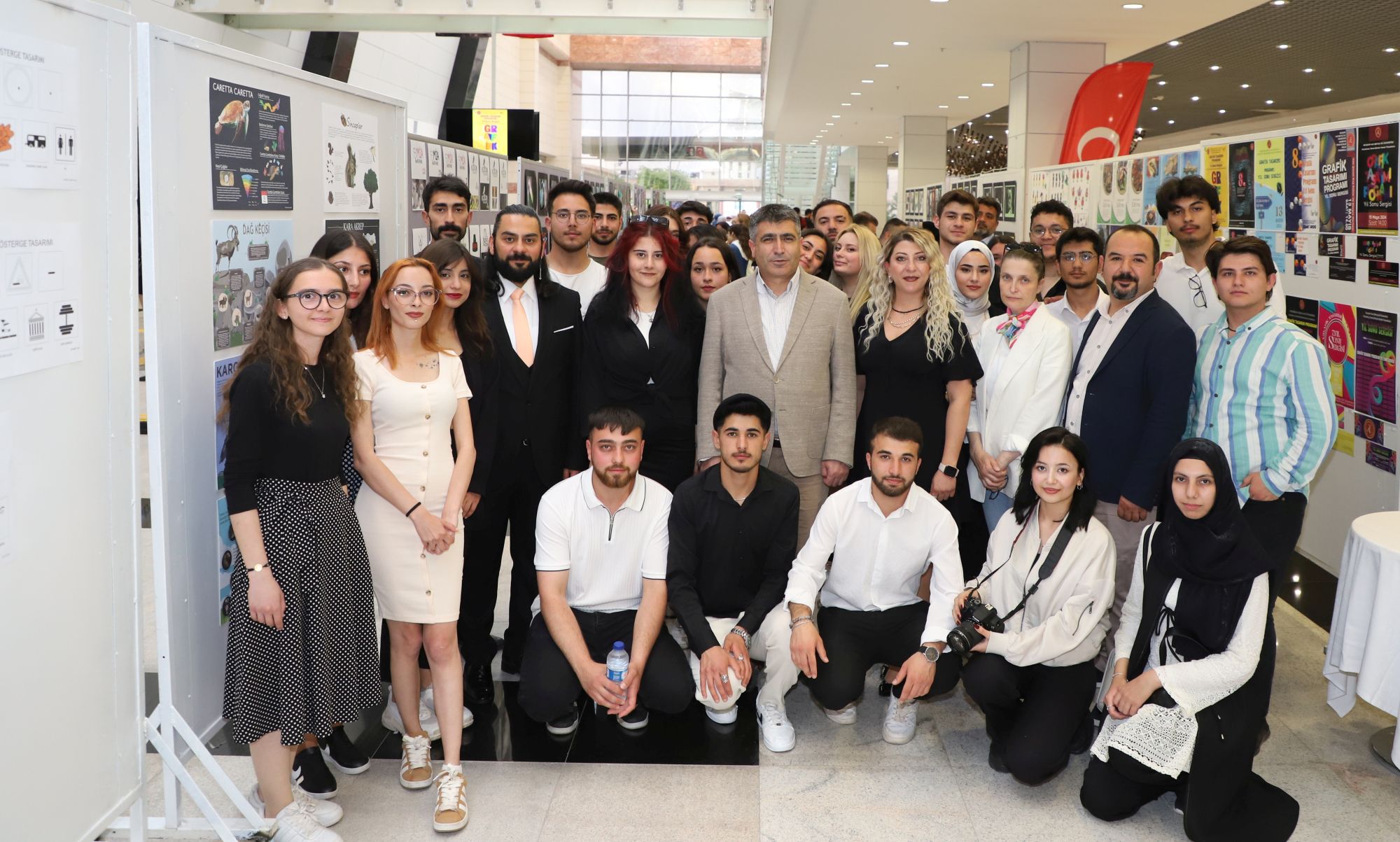 Meslek Yüksekokulu Grafik Tasarımı Bölümü öğrencilerinin ‘Ufkunuz ve Hayal Dünyanız Bu Sergide’ temalı ve ‘20. Geleneksel Grafik Tasarım Sergisi’ ile Hacıbektaş Teknik Bilimler MYO Grafik Tasarımı Bölümü öğrencilerin özgün çalışmalarının yer aldığı ‘Yılsonu Sergisi’nin açılışını katılımcılar ile birlikte gerçekleştiren Rektör Prof. Dr. Semih Aktekin eserleri bulunan öğrencileri tebrik ederek, kendilerine eğitim hayatlarıyla birlikte kariyer hayatlarında da başarılar diledi. Rektör Aktekin daha sonra katılımcılar ile birlikte sergi alanını gezerek öğrencilerden sergide yer alan çalışmaları hakkında bilgi aldı.