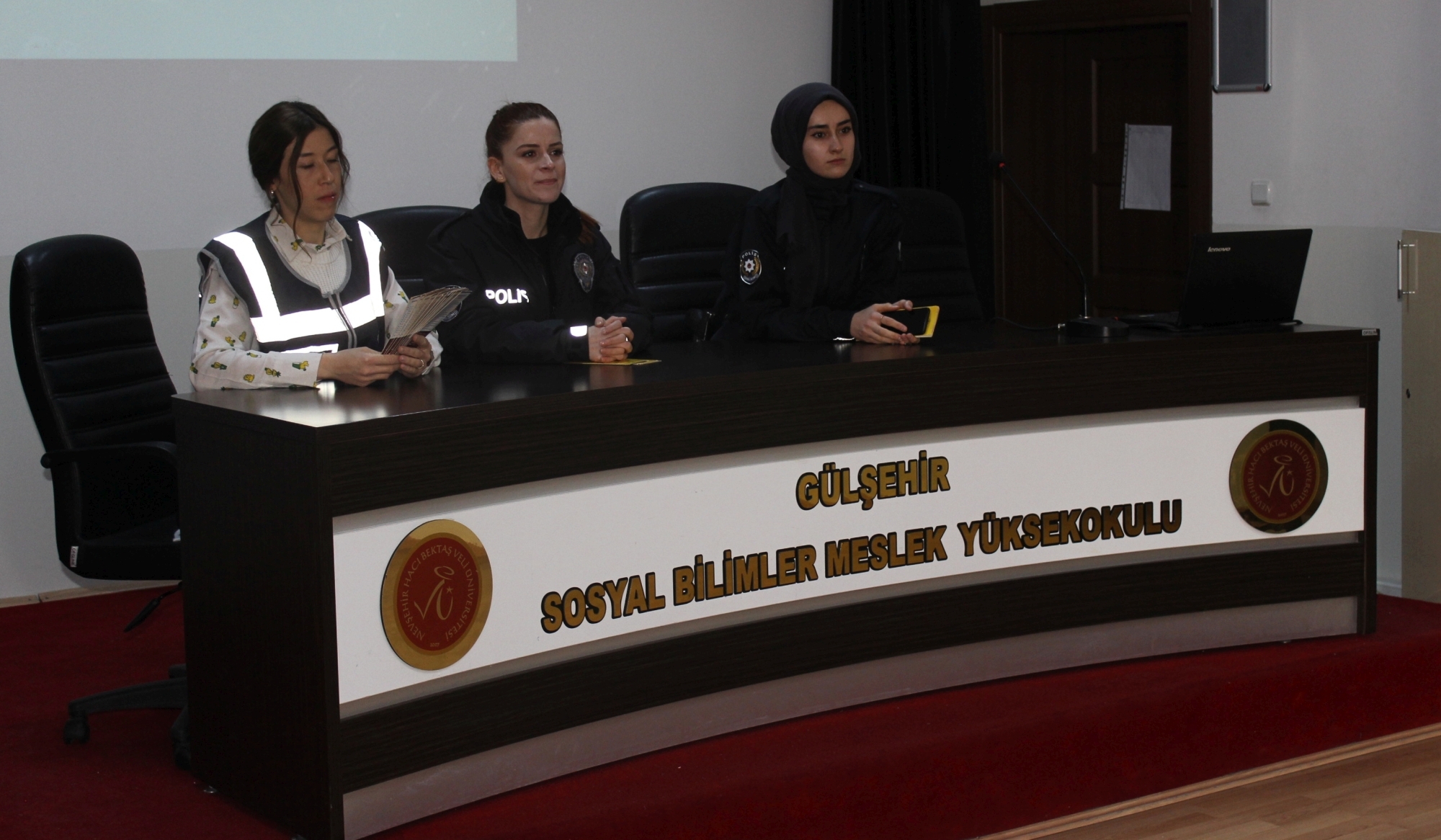 Nevşehir Gülşehir İlçe Emniyet Müdürlüğü tarafından Nevşehir Hacı Bektaş Veli Üniversitesi (NEVÜ) Gülşehir Sosyal Bilimler Meslek Yüksekokulu (SBMYO) öğrencilerine yönelik, “Kadın Destek Uygulaması” (KADES) hakkında bilgilendirme toplantısı yapıldı.