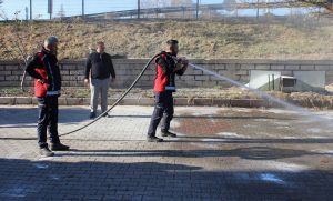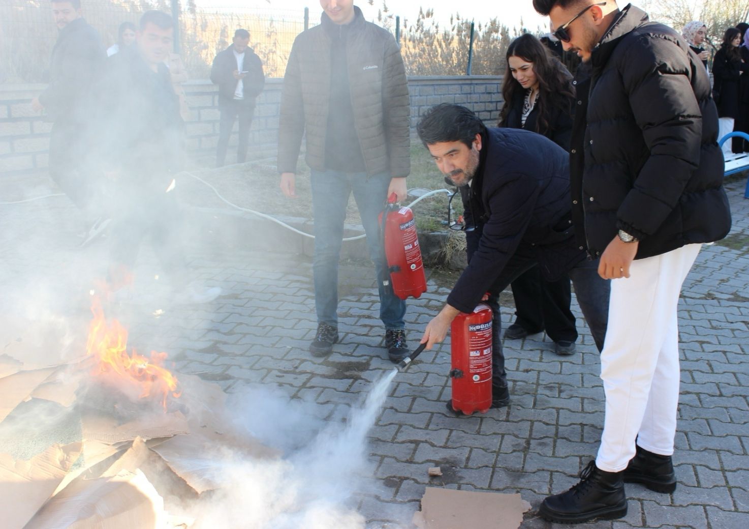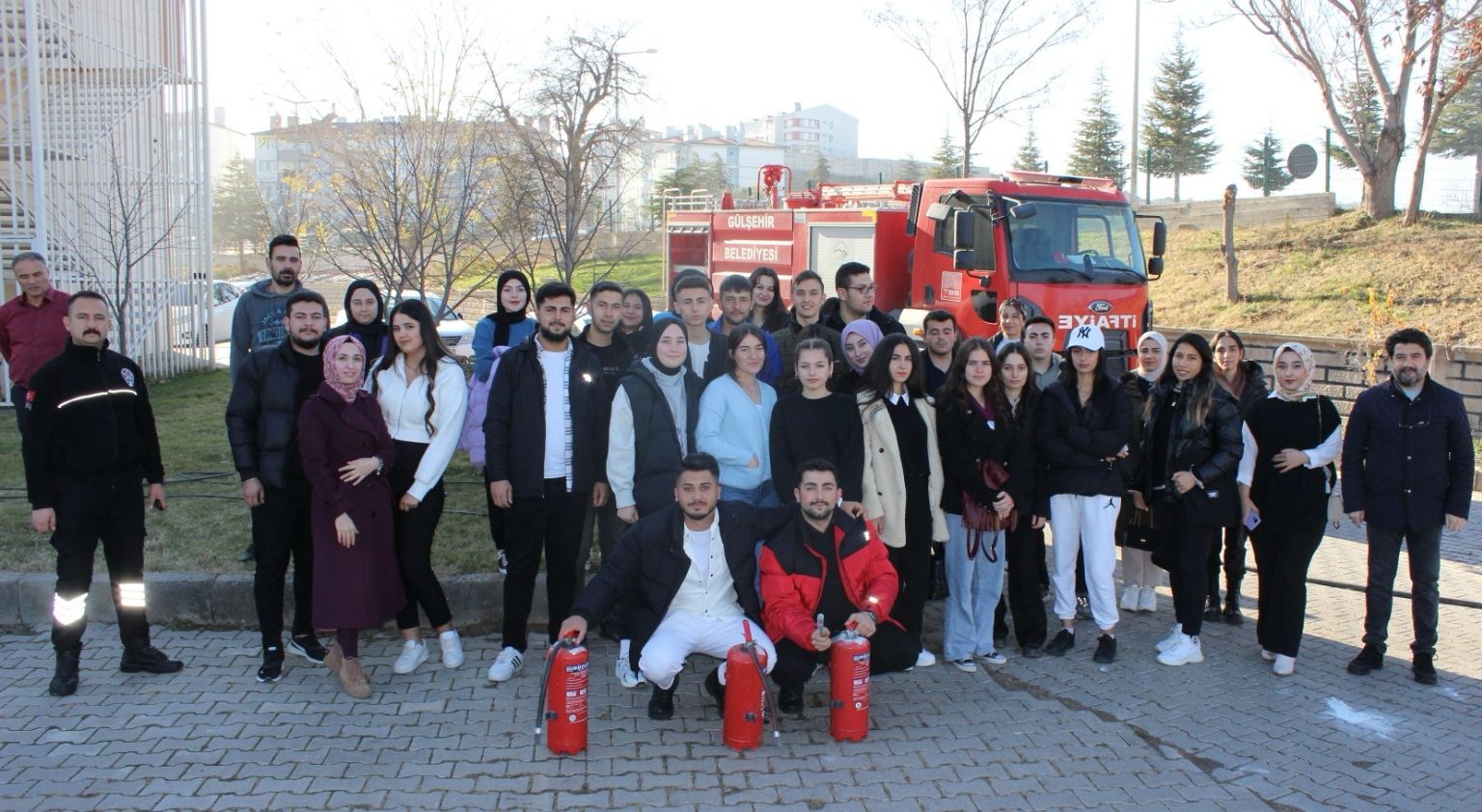 Nevşehir Hacı Bektaş Veli Üniversitesi (NEVÜ) Gülşehir Sosyal Bilimler Meslek Yüksekokulu (SBMYO)’da “İş Sağlığı ve Güvenliği” kapsamında uygulamalı yangın, tahliye tatbikatı ve eğitimi yapıldı.