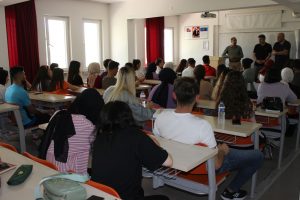 Protokol üyeleri daha sonra öğretim elemanları eşliğinde ve “Yerel Yönetimler Programı Kariyer Günü Söyleşisi” programı kapsamında sınıflarda öğrencilerle bir araya gelerek bilgi, birikim ve tecrübelerini öğrencilerle paylaştı.