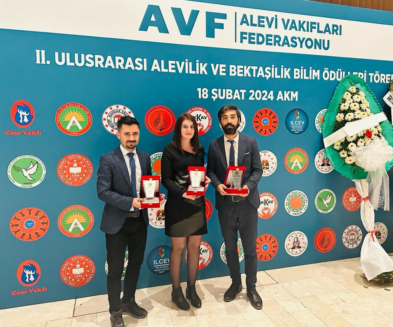 Nevşehir Hacı Bektaş Veli Üniversitesi (NEVÜ) Hacı Bektaş Veli Araştırma ve Uygulama Enstitüsü Müdür Yardımcılarından Dr. Öğr. Üyesi Mihriban Artan Ok’un doktora tezi, Dr. Öğr. Üyesi Erdem Akın’ın makalesi ve yüksek lisans öğrencisi Eren Salkaya’nın yüksek lisans tezi, Alevi Vakıfları Federasyonu (AVF) tarafından düzenlenen ‘2. Uluslararası Alevi ve Bektaşilik Çalışmaları Bilim Ödülü’ başlıklı uluslararası yarışmada ödüle layık görüldü.