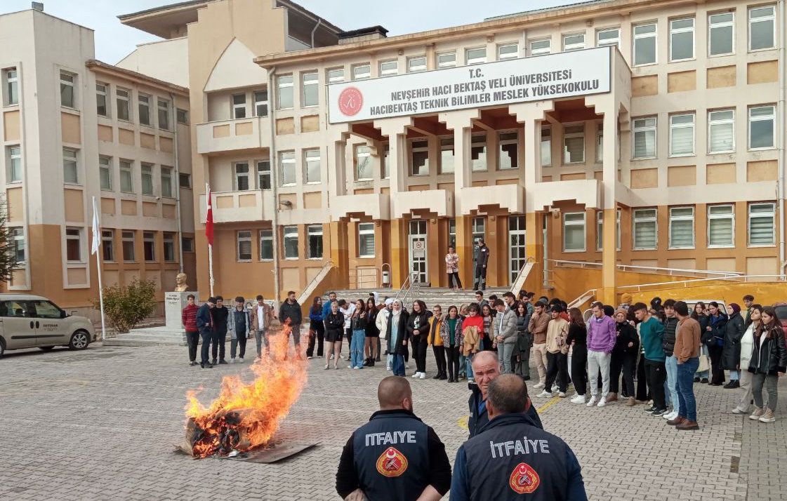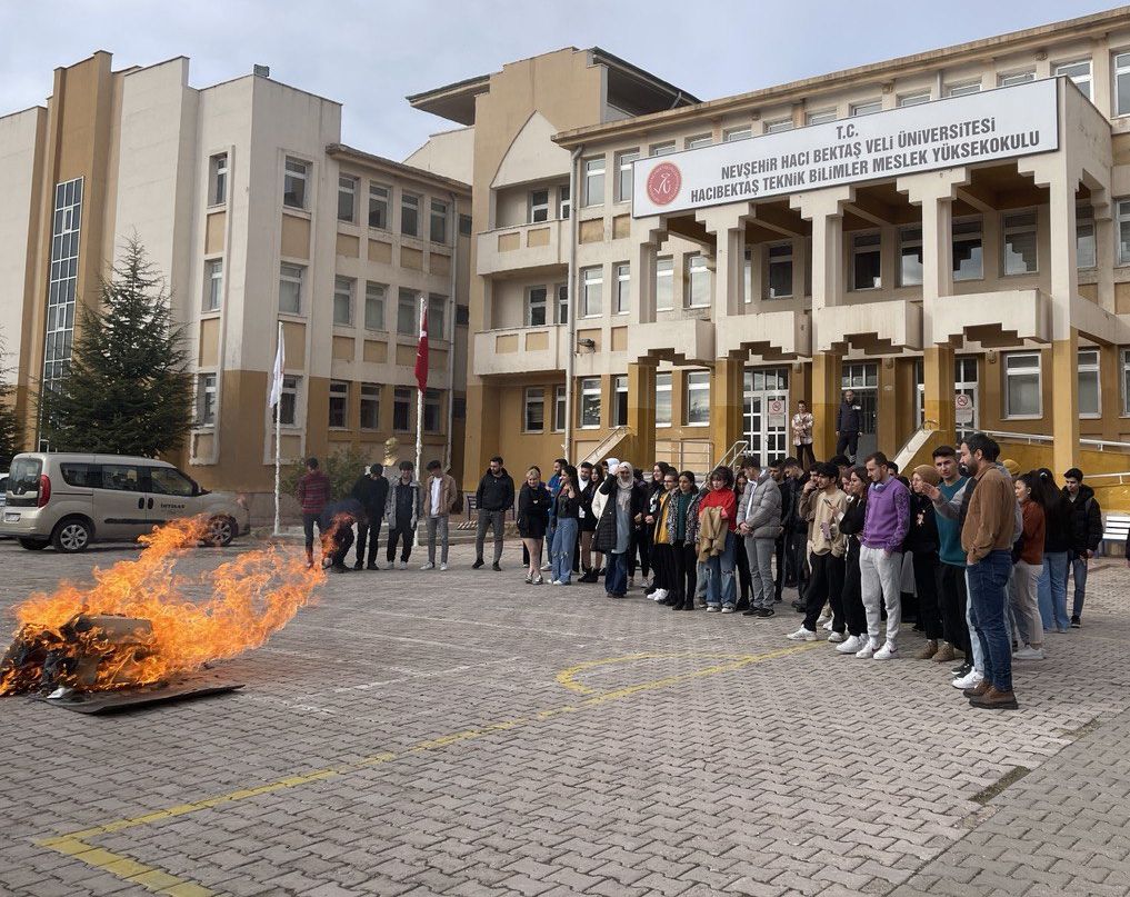 Nevşehir Hacı Bektaş Veli Üniversitesi (NEVÜ) Hacıbektaş Teknik Bilimler Meslek Yüksekokulu (TBMYO)’da, akademik ve idari personel ile öğrencilere yönelik “Yangın tatbikatı ve acil durum plan uygulama eğitimi” düzenlendi.