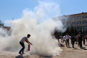 Nevşehir Hacı Bektaş Veli Üniversitesi (NEVÜ) Hacıbektaş Teknik Bilimler Meslek Yüksekokulunda (MYO) İş Sağlığı ve Güvenliği Dersi kapsamında ‘uygulamalı yangın eğitimi’ düzenlendi.