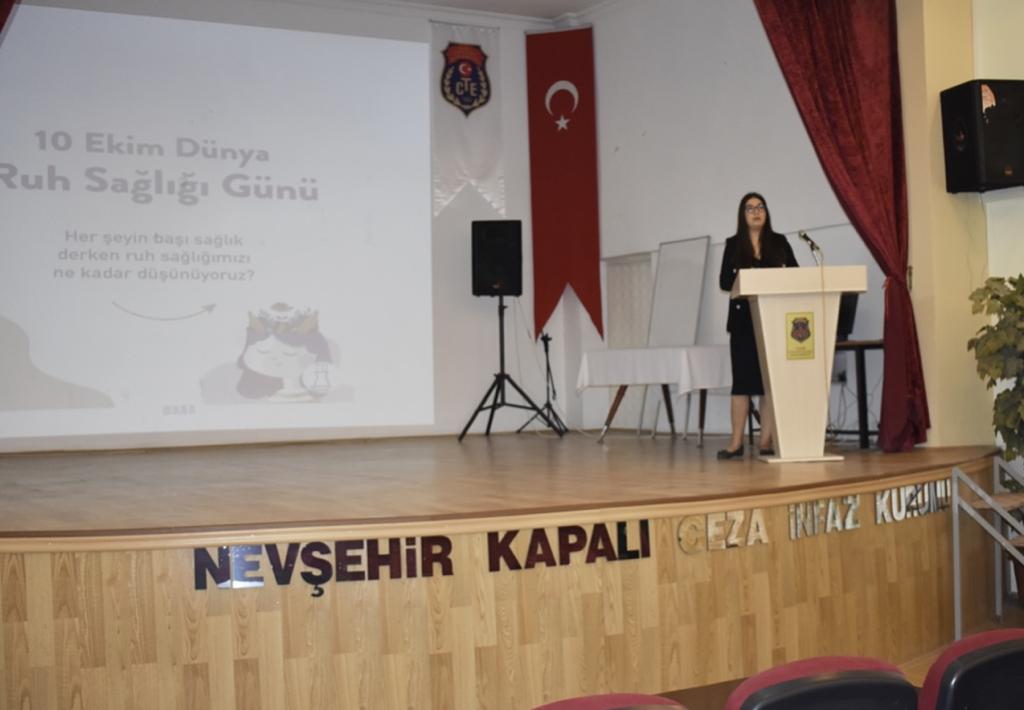 Nevşehir Hacı Bektaş Veli Üniversitesi (NEVÜ) Semra ve Vefa Küçük Sağlık Bilimleri Fakültesi Hemşirelik Bölümü, 10 Ekim Dünya Ruh Sağlığı günü kapsamında, Nevşehir E Tipi Kapalı Ceza İnfaz Kurumu’nda ‘Ruh Sağlığının Korunması’ konulu konferans verdi.
