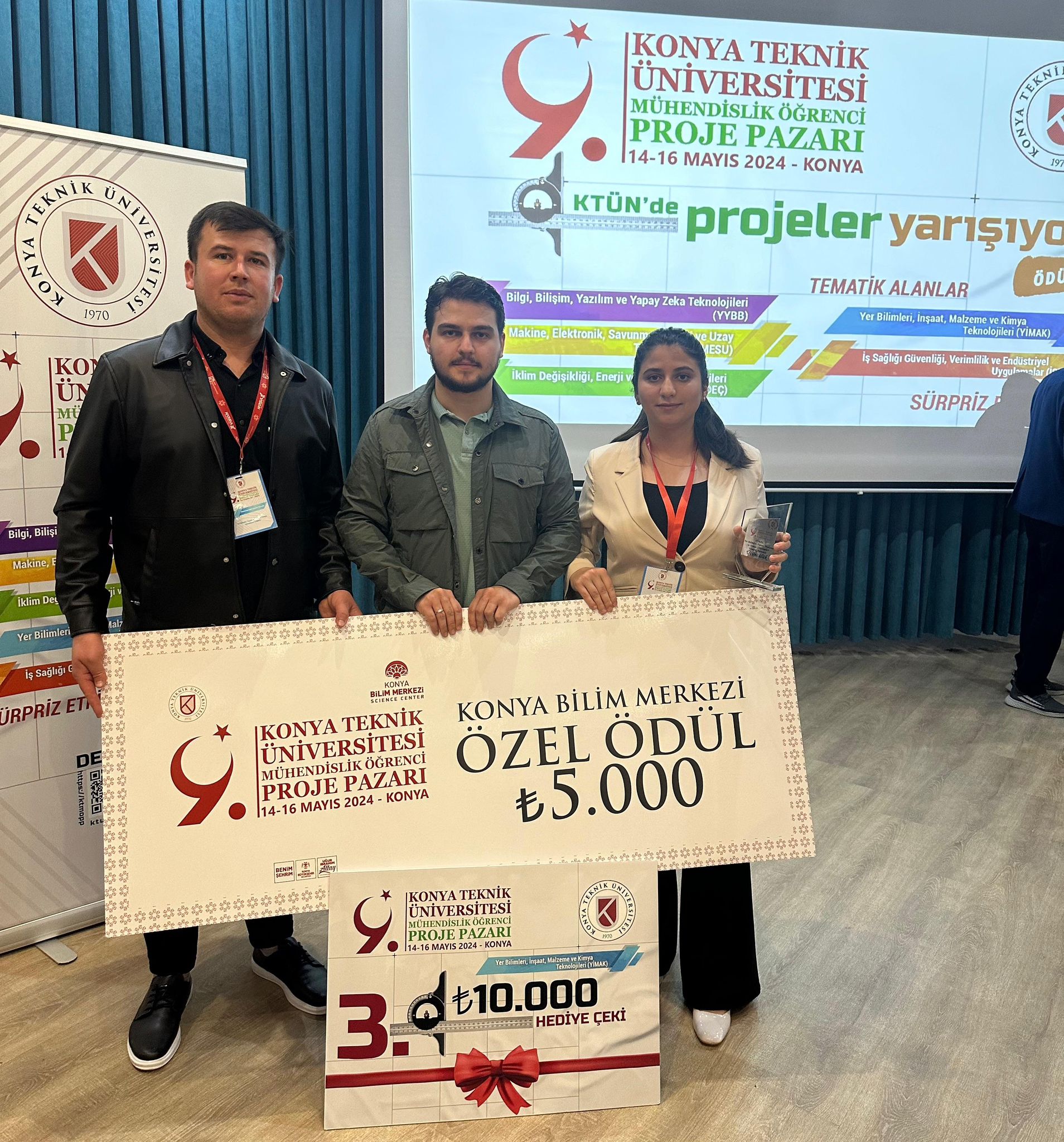 NEVÜ İnşaat Mühendisliği Bölümü öğretim üyesi Doç. Dr. İsmail İsa Atabey ve Arş. Gör. Bilal Baran danışmanlığında 4. Sınıf öğrencileri Kardelen Arslangörür ve Mohammad Kazım Tanish’in yürüttüğü çalışma ‘Yer Bilimleri, İnşaat, Malzeme ve Kimya Teknolojileri’ tematik alanında üçüncülük ve 103 proje arasında 11 projenin desteklendiği Konya Bilim Merkezi Özel Ödülünü almaya hak kazandı.
